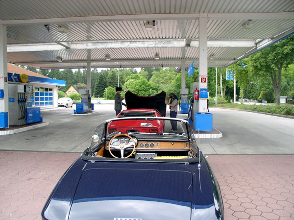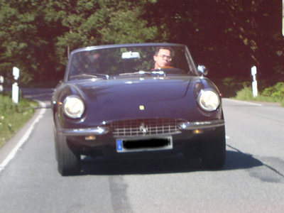 Der Lusso ist ein traumhaft schönes Auto (ist auf dem Gruppenbild in meinem ersten Post zu sehen). Ich mag ihn aber nicht, weil er zu klein für mich ist. In einem solchen Auto mit angezogenen Knien zu fahren, macht keinen Spaß und ist auch nicht ganz ungefährlich. Unserer ist dunkelblau mit hellbeigem Leder, komplett restauriert. Er hat nicht diesem Dampfhammer-Antritt vom 330 und ist im Innenraum erheblich leiser.