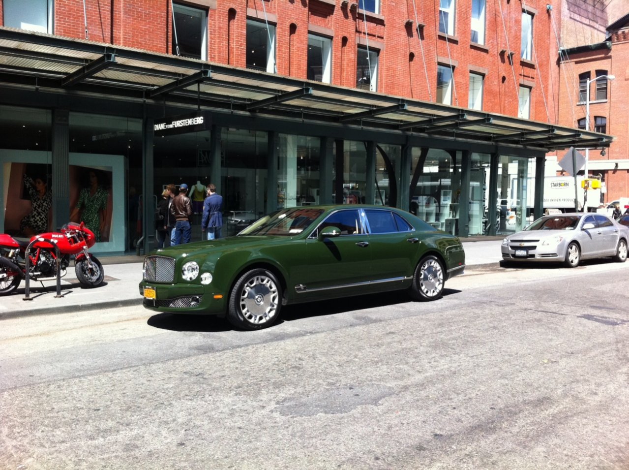 der wagen ist mir schon des öfteren in new york aufgefallen, er parkt vor den showroom der designerin diana von fürstenberg, der er auch gehört und die in diesem anwesen auch ihr privates penthouse hat. eine ungewöhnliche lackierung, weiss jemand ob das ein sonderlack ist?