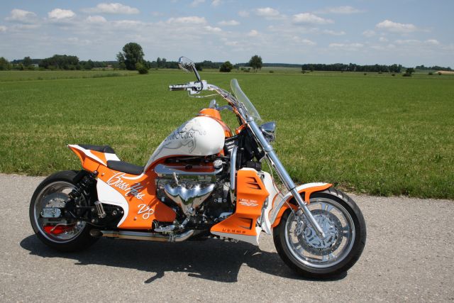 Ich würde somit dort schon noch ein paar mal vorbei schauen und würde auch noch - das ein oder andere mal - einen anderen Exoten mit einer Hoss mitbringen. Ich hätte da ein nettes Fahrzeug im Kopf, das auch von dem Leuten in Passau umgebaut wurde, die auch die Gladiator gebaut haben. Boss Hoss LS3 mit 6,2 Liter Motor V8. 300er Hinterreifen, Porschebremse hinten und Heck der BMW 1000 RR.