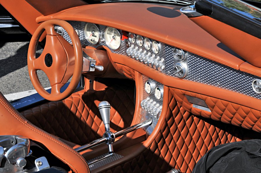 Das Propeller-Lenkrad gab es solange, bis in den USA Airbags auch für Kleinstserienhersteller verbindliche Pflicht wurden.