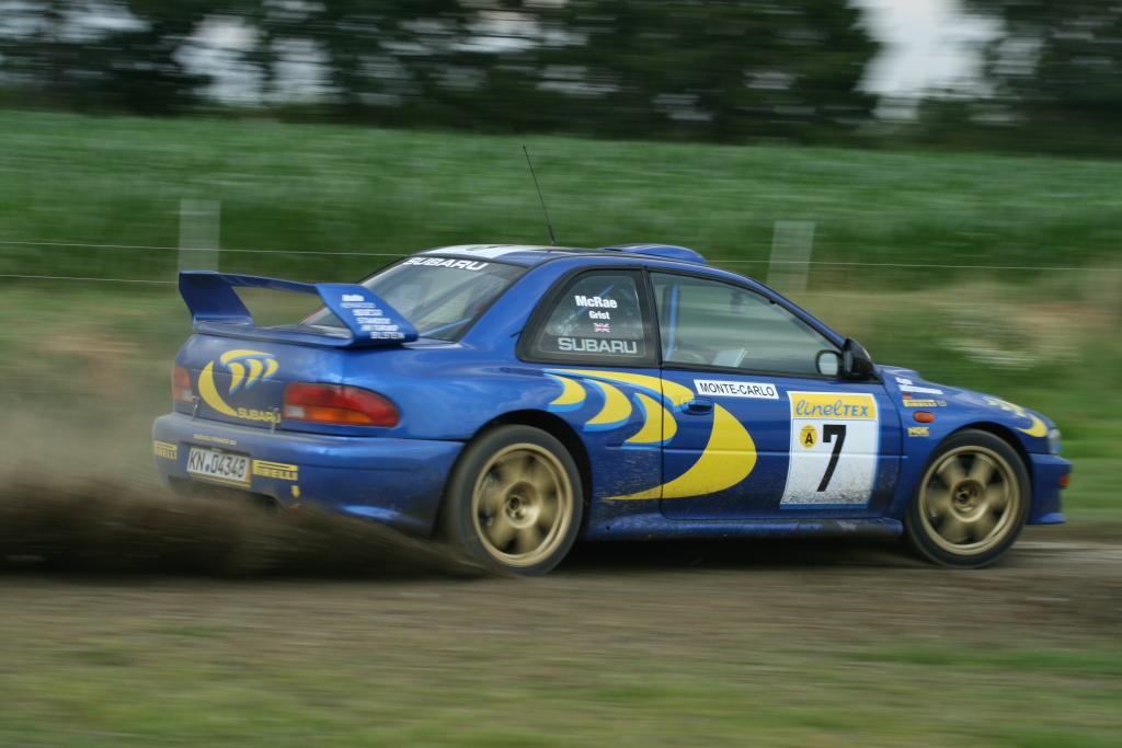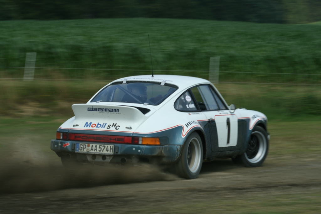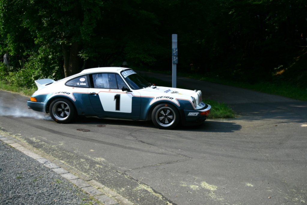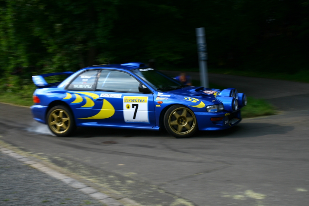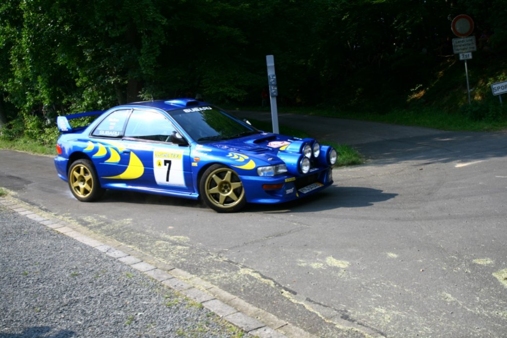Bei Slowly Sideways sind nur Originale oder exakte Repliken der Originale zugelassen. Beim Eifel Rallye Festival waren überraschend viele original erhaltene oder restaurierte Fahrzeuge am Start. Darunter zum Beispiel dieser Porsche 911 Carrera RS, der in den 1970er Jahren die Safari Rallye mitfuhr, anschließend dort an ein örtliches Team verkauft wurde, ein bewegtes Rallye-Leben in Afrika hatte und vor einigen Jahren erst nach Deutschland zurückkehrte, wo er liebevoll wiederaufgebaut wurde. Dagegen war die aktive Zeit des jüngsten Autos im Feld deutlich überschaubarer: Nach einem Werkseinsatz bei der Rallye Monte Carlo mit Colin McRae am Steuer folgten lediglich rund 10 weitere Einsätze, bevor der Wagen beiseite gestellt wurde. Der Subaru Impreza WRC von 1999 präsentierte sich wie aus dem Ei gepellt.