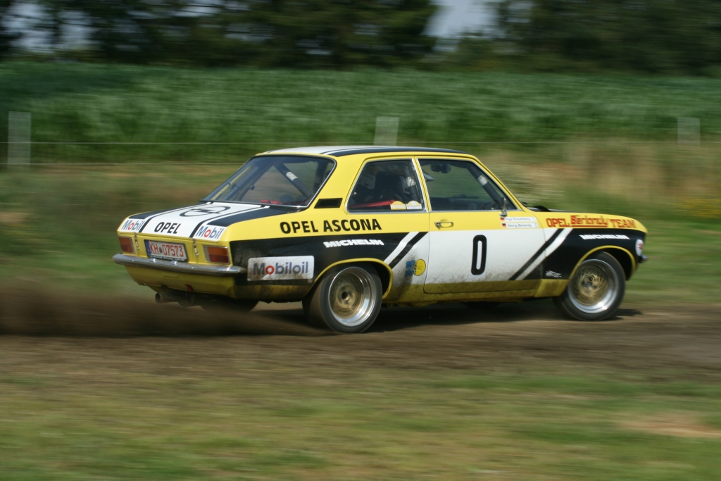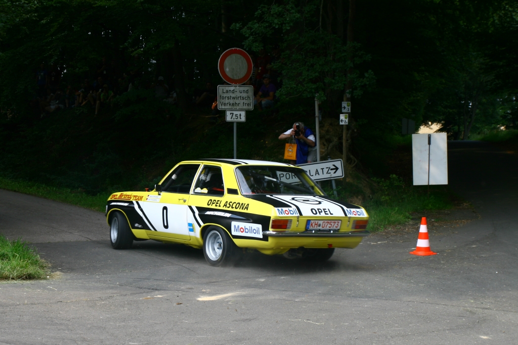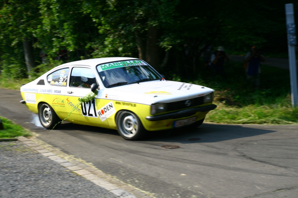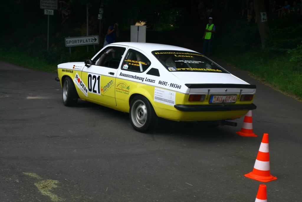 Auch Fahrer aus Deutschland und der Eifel gaben sich beim Rallye Festival die Ehre. Ihre Fahrzeuge wurden als Vorwagen zum eigentlichen Feld genutzt, reihten sich beim Shakedown jedoch frei mit ein, da hier jeder Fahrer soviele Runden fahren darf, wie er mag. Zu erkennen sind die Vorwagen an der 0 vor der eigentlichen Startnummer. So zum Beispiel Georg Berlandy, der seinen wunderschön aufgebauten Opel Ascona A als Vorwagen zum Einsatz brachte. Auch der Local Hero Jürgen Lenarz mit seinem Kadett C fuhr sich mit weiten Driftwinkeln schnell in die Herzen der Fans.
