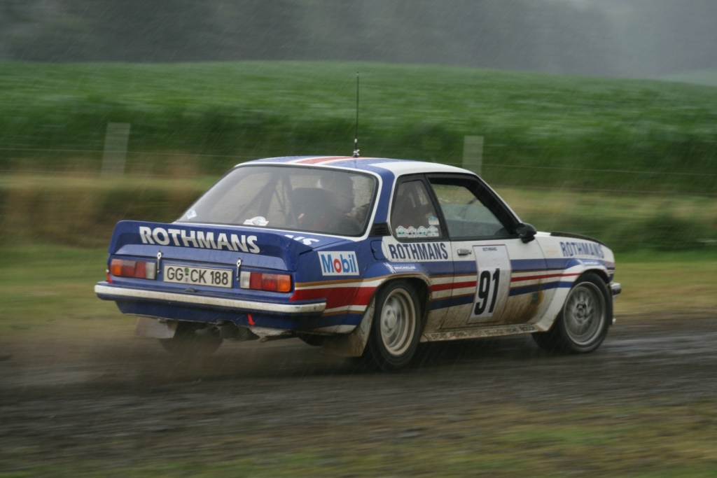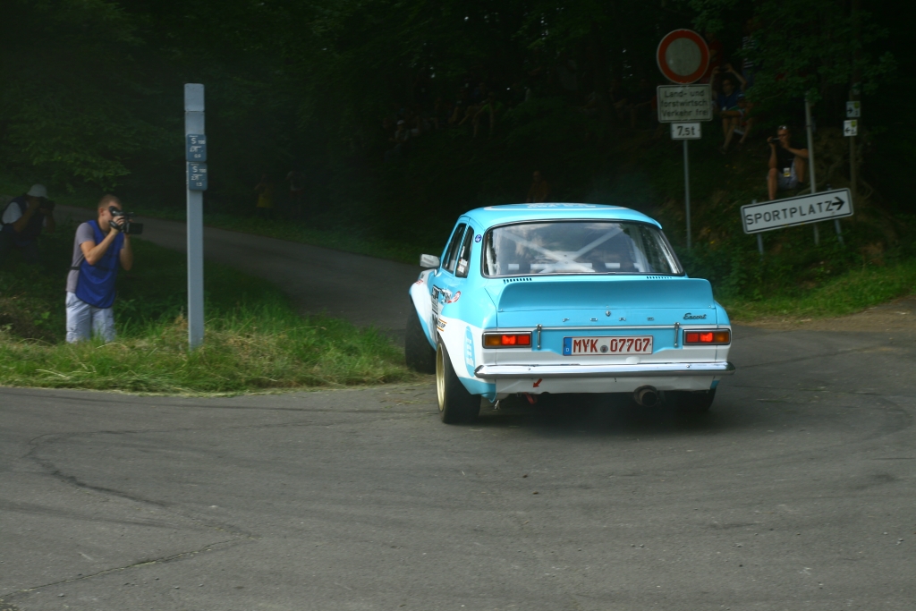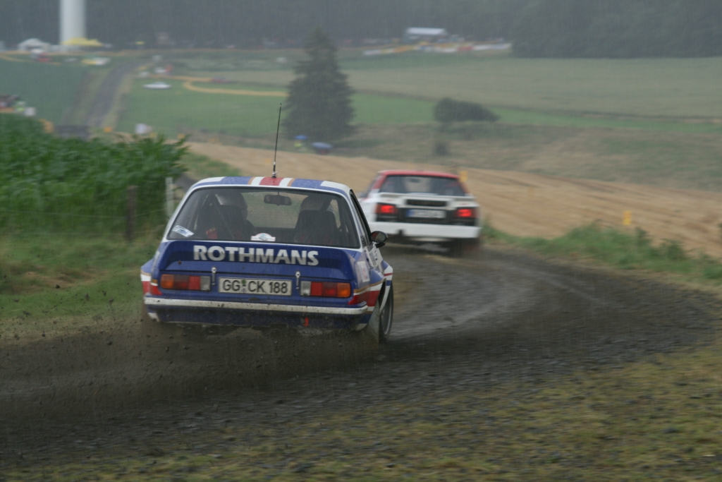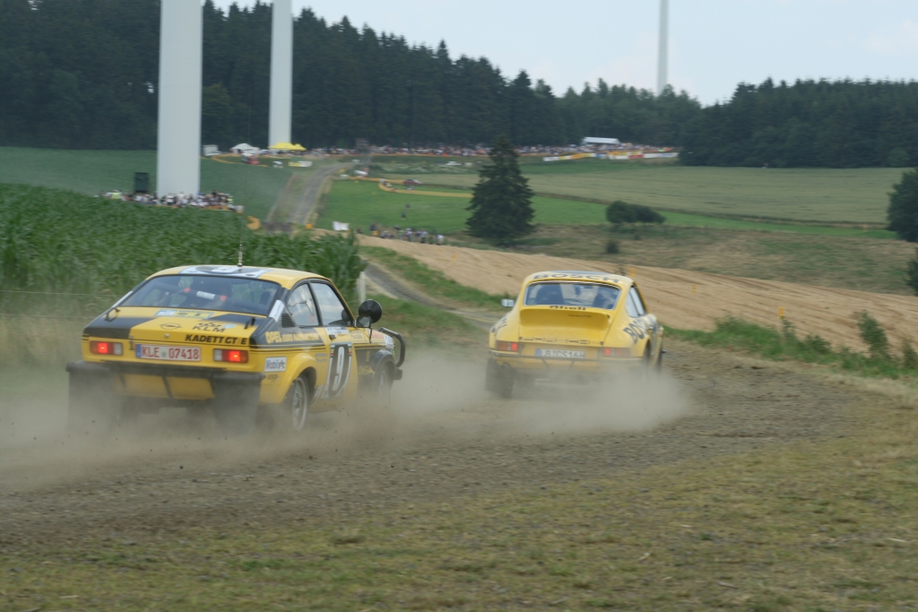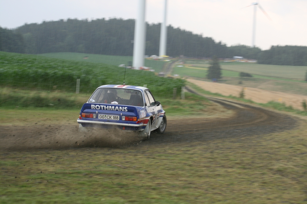 Auch Fahrer aus Deutschland und der Eifel gaben sich beim Rallye Festival die Ehre. Ihre Fahrzeuge wurden als Vorwagen zum eigentlichen Feld genutzt, reihten sich beim Shakedown jedoch frei mit ein, da hier jeder Fahrer soviele Runden fahren darf, wie er mag. Zu erkennen sind die Vorwagen an der 0 vor der eigentlichen Startnummer. So zum Beispiel Georg Berlandy, der seinen wunderschön aufgebauten Opel Ascona A als Vorwagen zum Einsatz brachte. Auch der Local Hero Jürgen Lenarz mit seinem Kadett C fuhr sich mit weiten Driftwinkeln schnell in die Herzen der Fans.