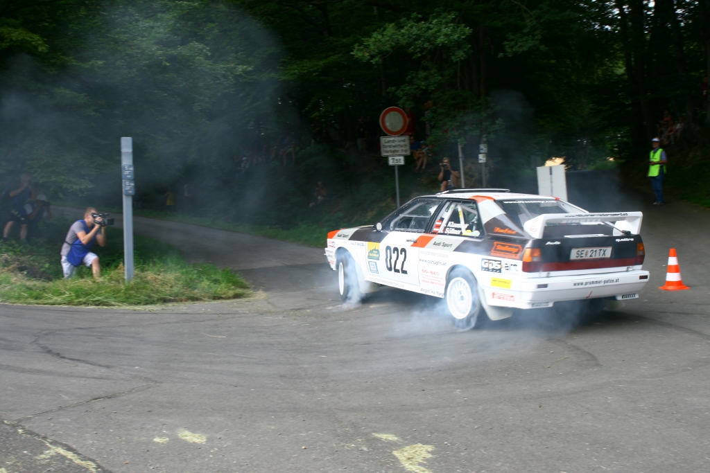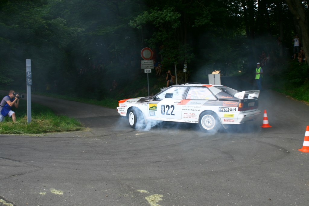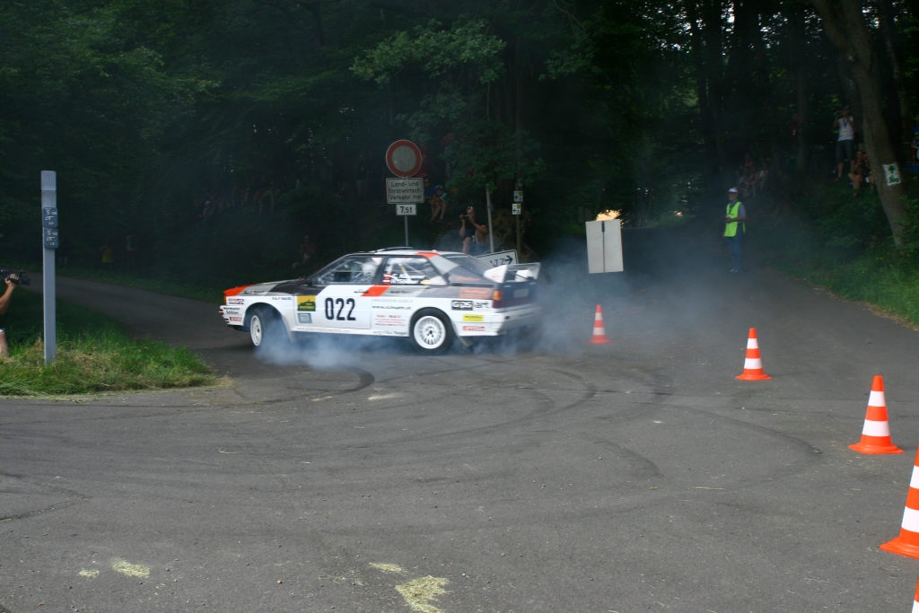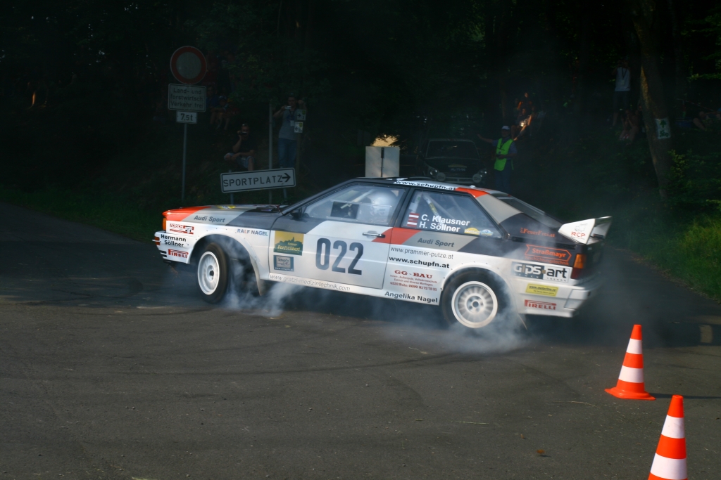 Ein Fahrzeug muss noch gesonderte Beachtung finden: Aus Österreich reiste das Team Klausner/Söllner mit einem Audi quattro A2 an und zeigte beim Shakedown, dass man eine Haarnadelkurve auch mit dem brachialen Einsatz des Gaspedals bezwingen kann.