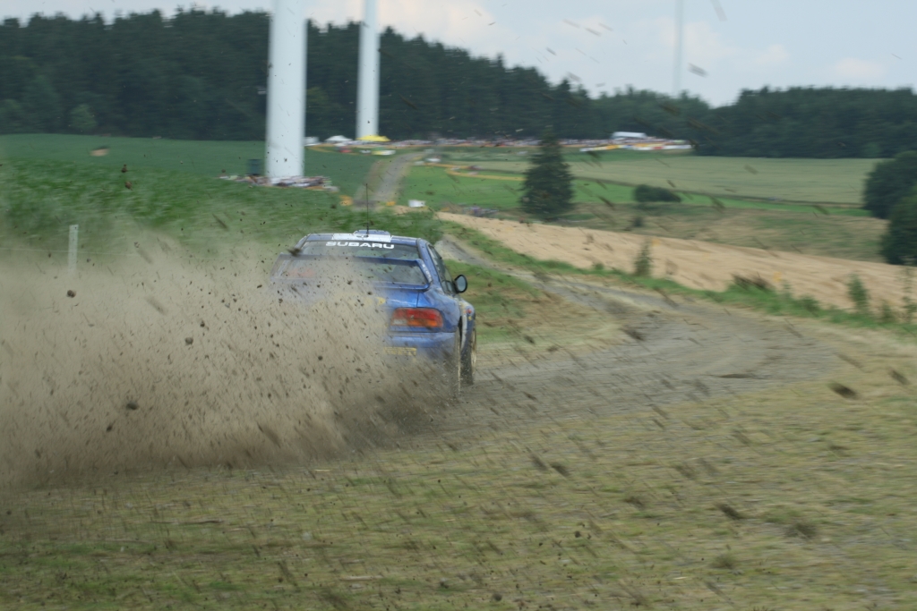 Die künstliche Kuppe und die Wasserdurchfahrt waren im letzten Jahr beide in der von mir beschriebenen Bosch Super Stage, die am Freitag gefahren wird und an der ich auch gestanden habe (die Schotterbilder weiter oben). Die Sprungkuppe war von meinem Standpunkt etwa 300-500 Meter weiter in Fahrtrichtung der Strecke nach, da muss man dann allerdings rechtzeitig da sein (sehr voll) und muss einkalkulieren, dass man bei aufziehendem Regen (siehe meine letztjährigen Erfahrungen) einen noch weiteren Weg zurück zum Parkplatz hat.