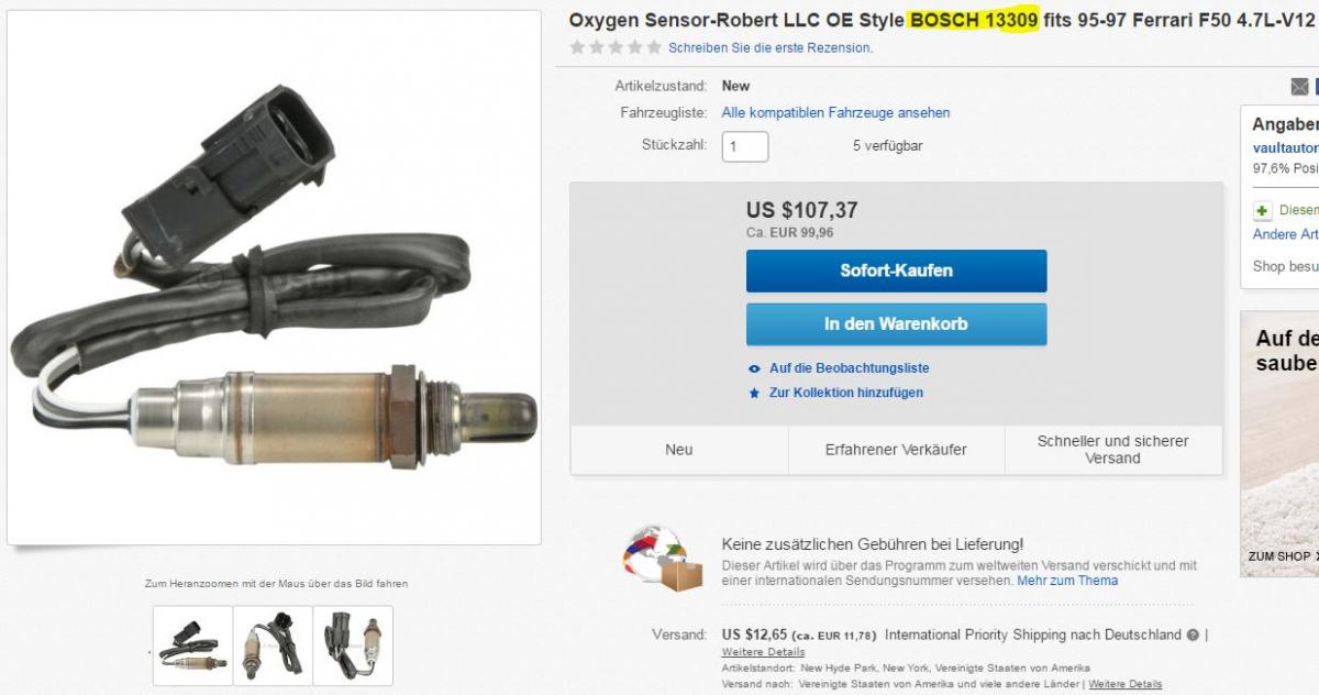 Brauche Info wo Ich die Lambdasonde für mein Ferrari F355 GTS, 2.7 Motor