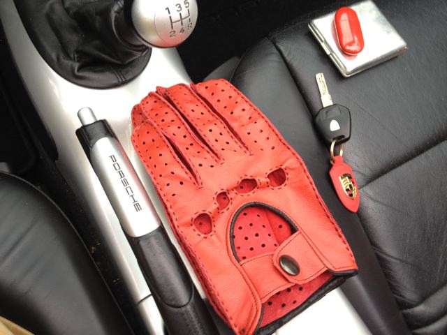 Ein lieber Freund besitzt einen dunklen Porsche Boxster mit schwarzem Lederinterieur und einem roten Porscheschlüsselanhänger, er bestand darauf, wegen des Schlüsselanhängers und wegen der roten Zeiger im Cockpit, rote Autofahrerhandschuhe in diesem Wagen zu tragen, auch ihm habe ich den weiter oben erwähnten Lieferanten empfohlen, das Ganze sieht schon sehr schick aus, aber für meinen Geschmack etwas prätentiös, denn er benutzt dann auch noch dazu immer nur ein Tiffany-Feuerzeug aus rotem Chinalack, und das in einem Boxster!!!