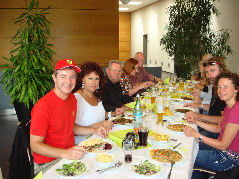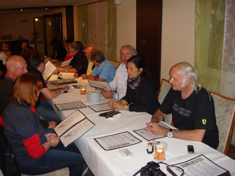 Eine kleine Truppe fuhr wieder in das Hotel, wo ich nun rückwärts in die Tiefgarage fuhr :evil:. Dort sahen wir uns noch Ferrari Videos am Notebook an und stießen auf den tollen Tag an. Herbert und ich kamen erst um 1:30h ins Bett, weil wir uns so viel zu erzählen hatten.