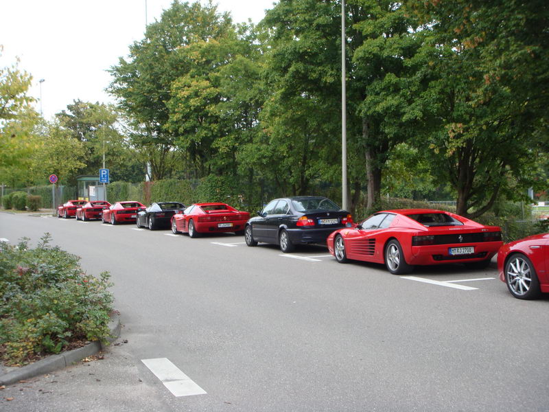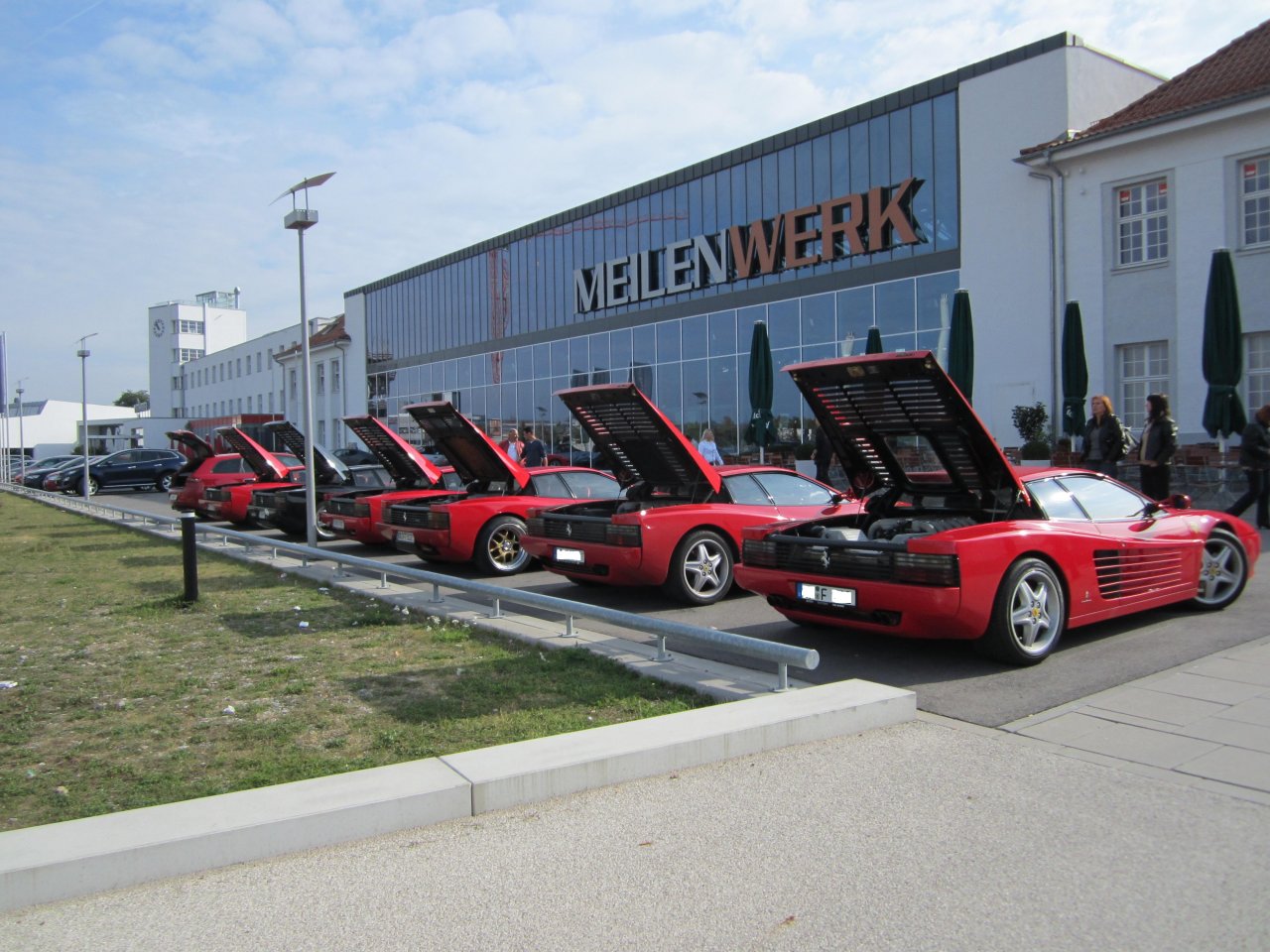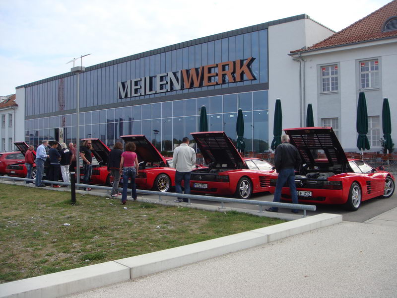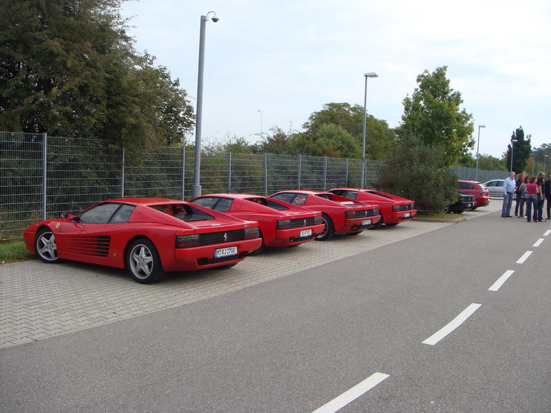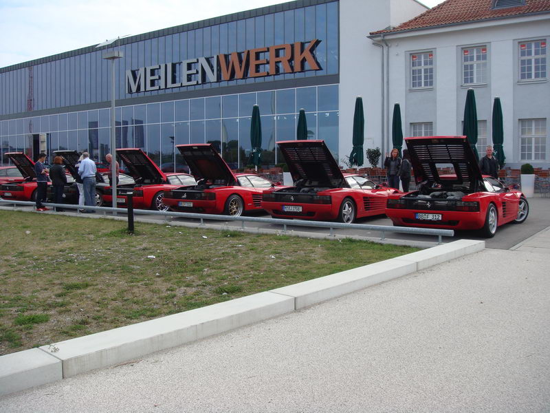 Am nächsten Morgen gab es ausreichend Frühstück und wir düsten zum Meilenwerk, das wir über einen Tripper beim Eros Center erreichten :wink: Erst regnete es noch etwas und wir lernten uns gegenseitig kennen. Es war eine richtig nette Runde. Nach und nach kamen weitere Testas, 512er TRs und ein M. Wir unterhielten uns über Ferraris und die Welt.
