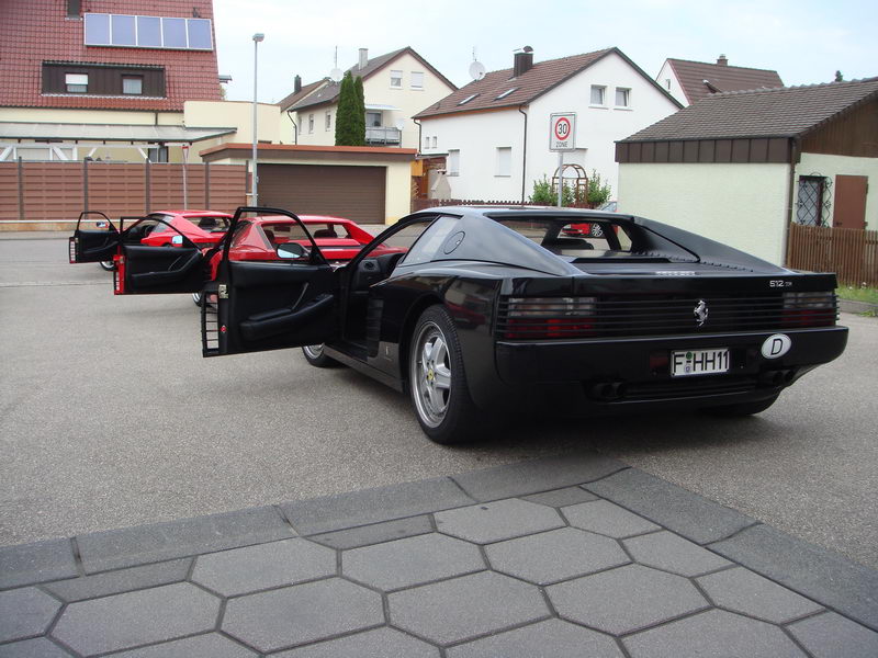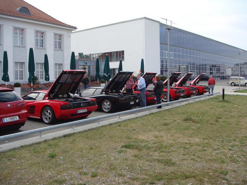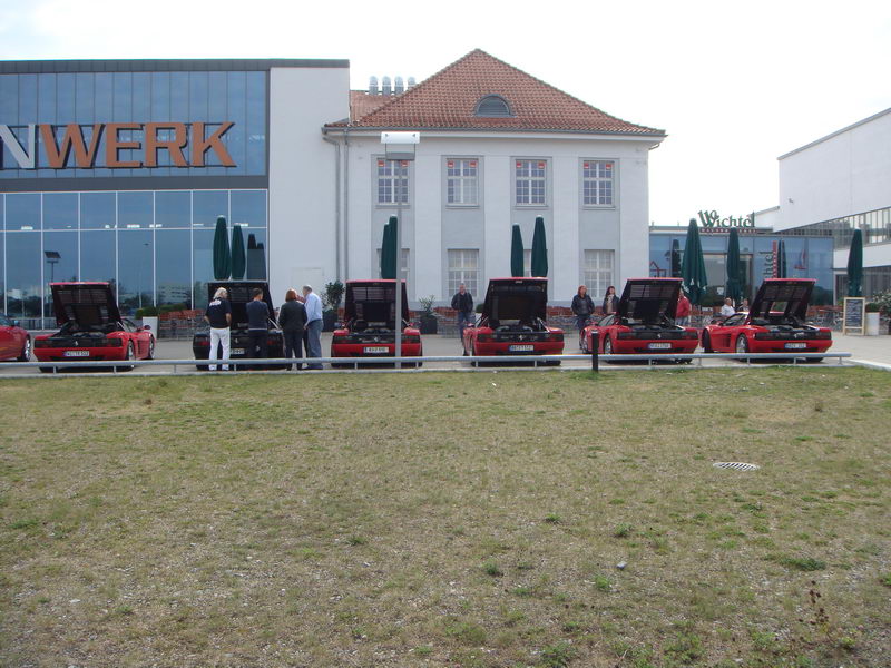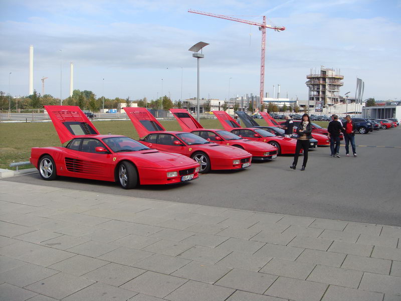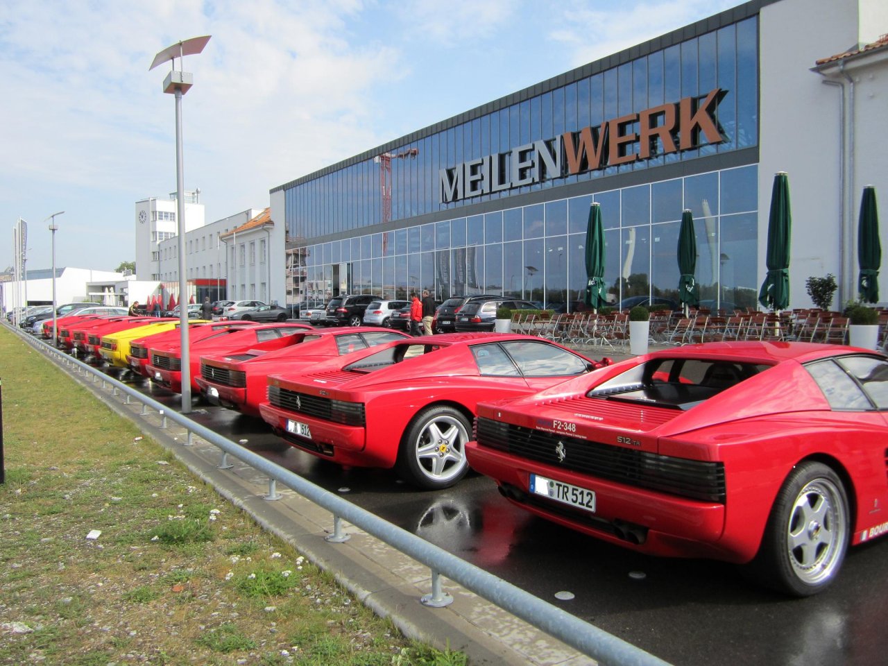 Am nächsten Morgen gab es ausreichend Frühstück und wir düsten zum Meilenwerk, das wir über einen Tripper beim Eros Center erreichten :wink: Erst regnete es noch etwas und wir lernten uns gegenseitig kennen. Es war eine richtig nette Runde. Nach und nach kamen weitere Testas, 512er TRs und ein M. Wir unterhielten uns über Ferraris und die Welt.