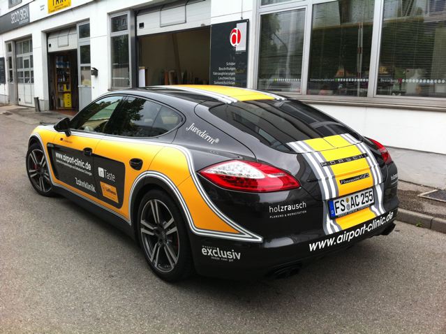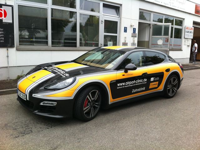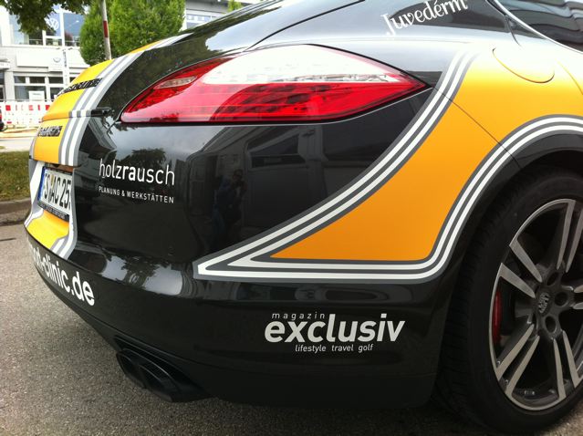 der panamera ist von haus aus kritisch in punkto design und manche finden ihn schon ohne zierstreifen nicht schön, andere fahren ihn nur am sonntag und sind stolz darauf. dieser hier fährt eben werbung und hat nicht die eleganz der martini porsche der 70 er und 80 er jahre. er erfüllt aber prima den ihm speziell zugedachten zweck.