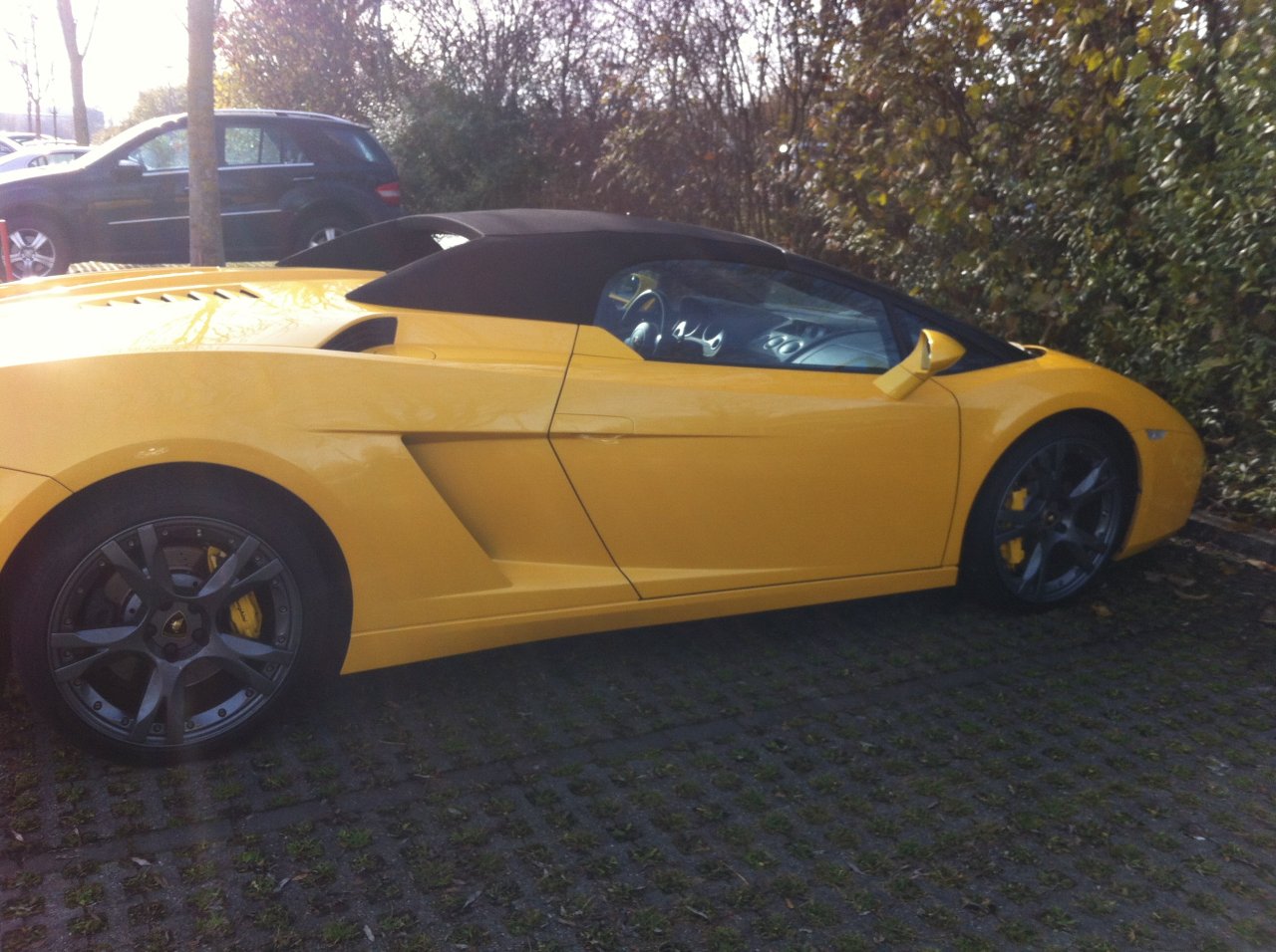 nachfolgend ein paar Fakten zu meinem Fahrzeug. Ich habe lange überlegt ob F430 oder Gallardo. Beide haben jeweils Vor- und Nachteile und eine eigene schöne Charakteristika. Am Ende ist es dann der Gallardo geworden. Folgende Daten zum Fahrzeug: Aussenfarbe midas gelb metallic, Km 24.000, in Nordbayern gekauft, mit schwarzen Callisto Felgen, eGear, Lifting und vielem anderen. Rückfahrkamera hat er leider nicht, so dass Aufpassen angesagt ist. Services sind alle gemacht. Die Kupplung hat noch ca. 30% ist also demnächst fällig. Werde ich wohl bei einem freien Händler in der Nähe von Nürnberg machen lassen.