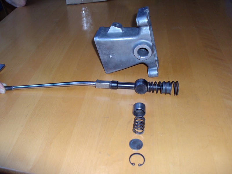 Die seitlich an der Box angebrachte Arretierung der Schaltstockes, bestehend aus Seegering,Verschlussplatte, Feder, Druckkolben waren verdreckt / steckten. Die Feder (welche über den Kolben auf den Schaltstock Druck ausübt um ihn zu stabilisieren) war funktionslos.