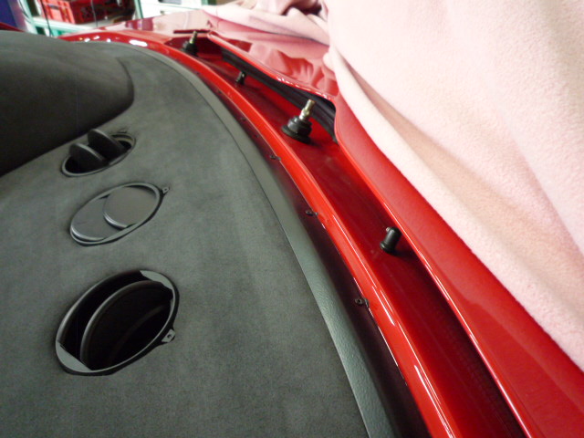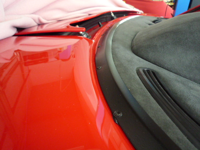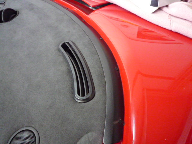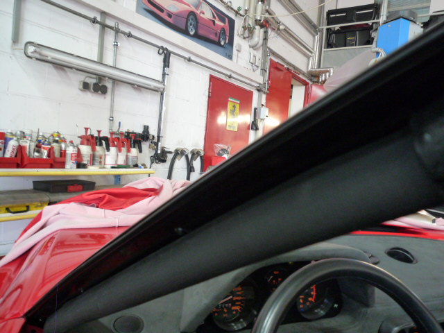 Im Innenraum sieht es schon fast schon wieder wie ein Ferrari aus. Leider mussten einige Nacharbeiten an den Seitenscheiben hinter der B-Säule durchgeführt werden, da die Verkleidungen mal unsachgemäß entfernt worden sind. Dabei wurden die Nieten mit Gewalt durch die Führungen gezogen :evil: ...