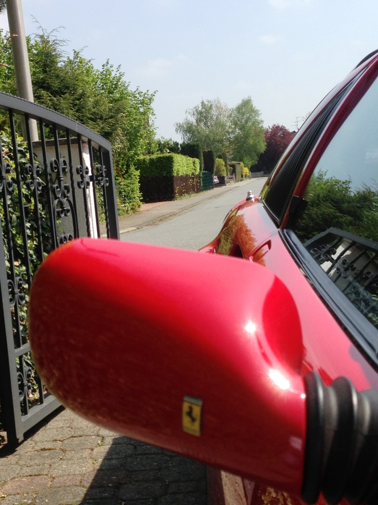 Einziger Wermutstropfen - die Spiegel. In geistiger Umnachtung habe ich mal (wahrscheinlich mit Helium im Kopf) die Idee gehabt, die Spiegel in Rot lackieren zu lassen. Das ist leider so einfach und ohne Qualitätseinbussen nicht mehr umkehrbar zu machen. Aus Gründen der Qualitätseinbussen wurde auf eine "Rückrüstung" verzichtet. Ich werde also den Markt beobachten :)