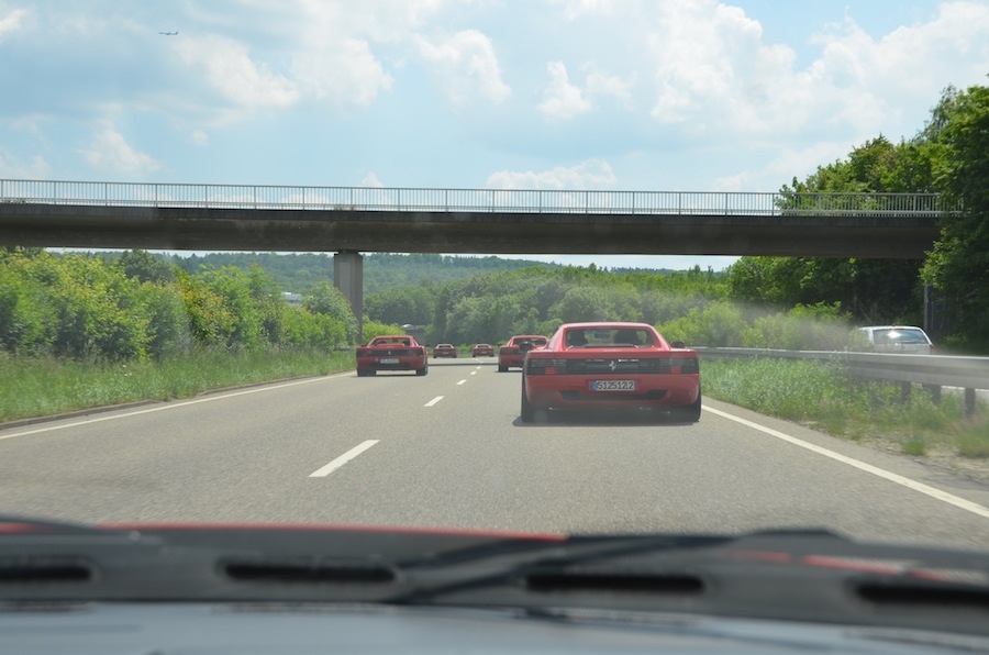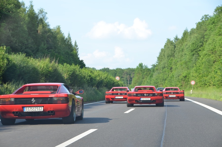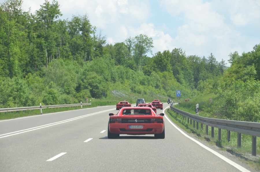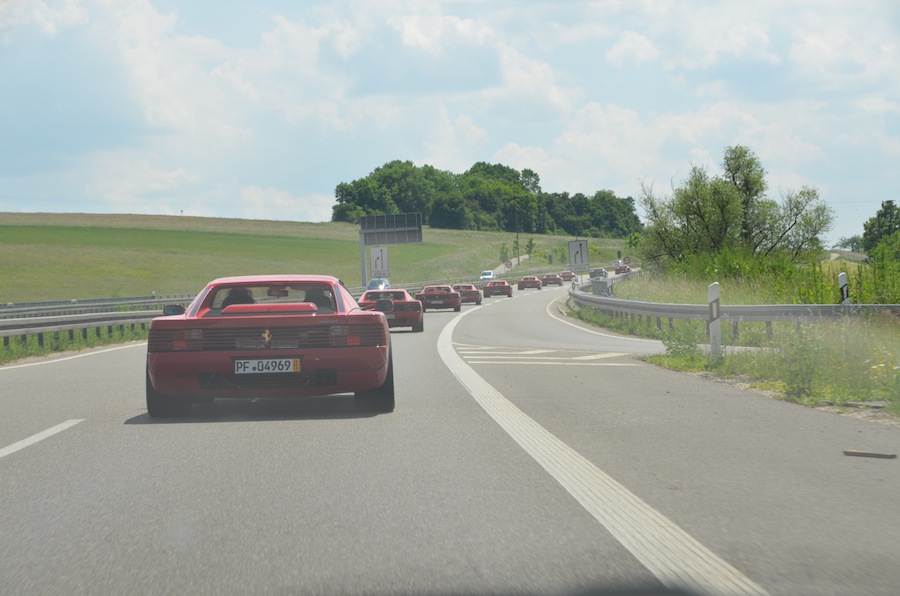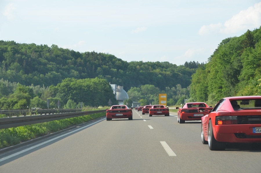 Wenn 13 Testas durch 1,5 km Tunnel fahren und das Orchster von 156 Zylindern erschallt - dann bekommt man Gänsehaut - wenn auf der Autobahn plötzllch eine rote Wand entsteht (naja, mit ein wenig schwarz) und man von hinten den geilsten Poppes der Welt (Auto-Poppes!) gleich 12 mal sehen kann - das ist schon beeindruckend und wenn bei einer Hochzeit die Braut zur Nebensache wird, weil der Parkplatz formschönere Kurven zu bieten hat - dann versteht Ihr vielleicht meine Begeisterung.