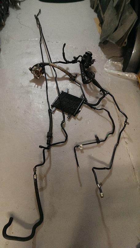 Mit Abbau der Motor Cw Verkleidungen kommt man an die drei Schrauben der Servopumpe, rückt die Pumpe aus deren Sitz und entnimmt die Antriebswelle dieser. Alles wieder fest schrauben und schon fährt man ohne Lenkunterstützung. Nachteilig ist das noch befindliche Servo Öl welches die Lenkung erschwert, das ist so wenn der Motor aus ist und im Stand lenkt. Ohne Öl ist die Lenkkraft geringer.