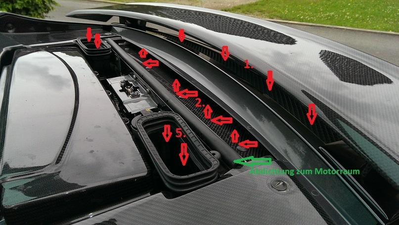 (2.), in die Öffnung der Heckklappe (3,) zu den Durchtritt (4.) und in die Ansaughutzen (5.)