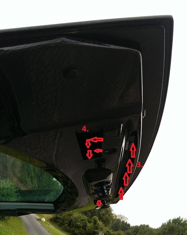Optional (1.) die Eintritt unterhalb der Heckscheibe.