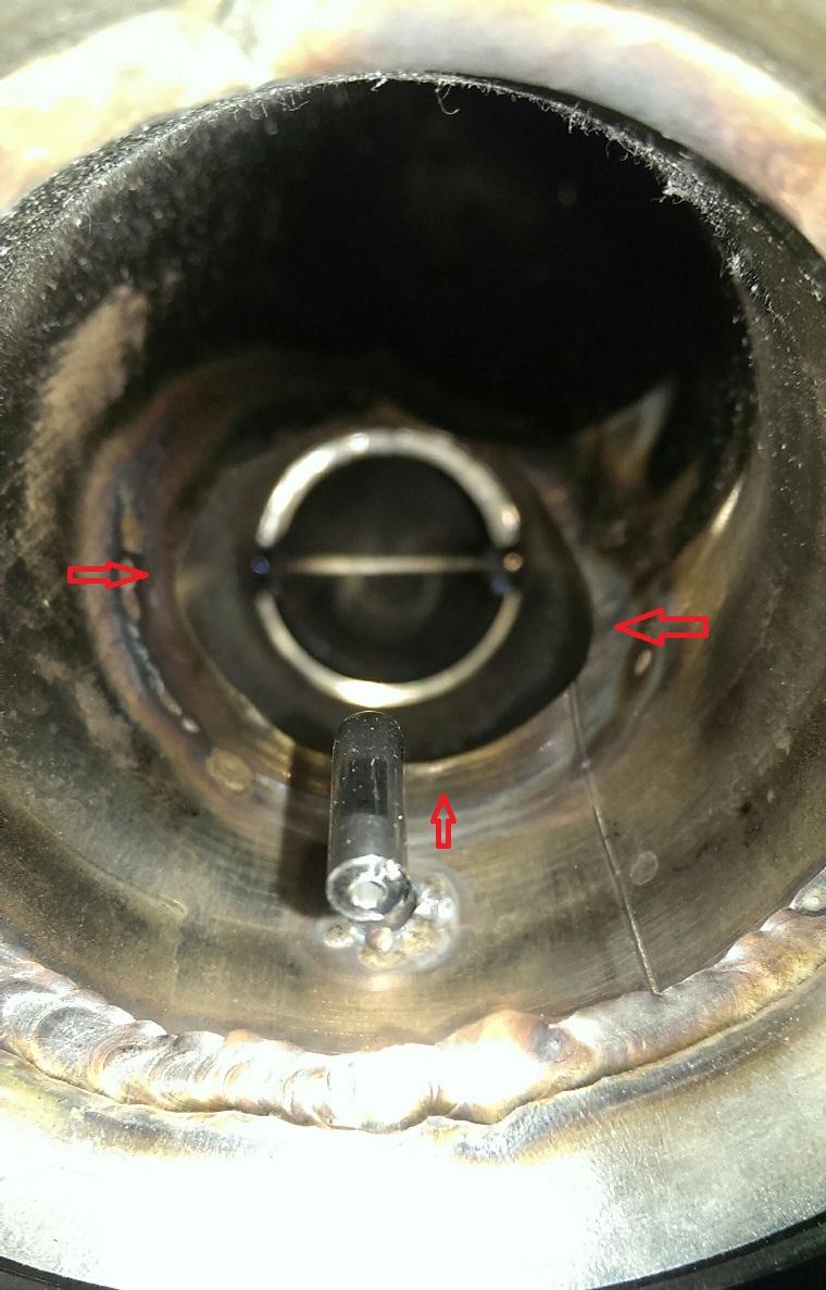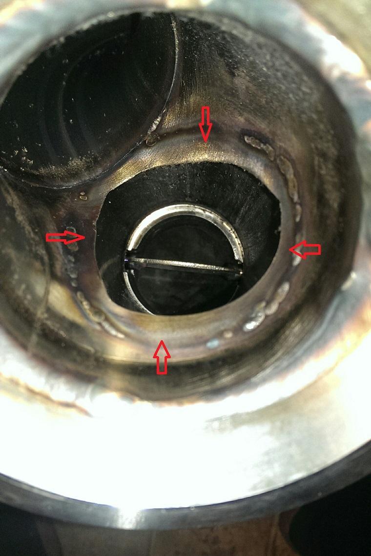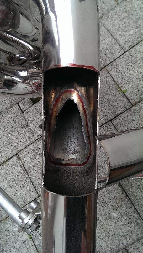 Rohrmaterial ( rote Pfeile ) bei den Rohrverschweissungen im Split auf beiden Zylinderbänken.