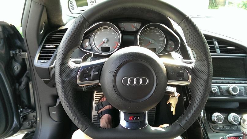 Zudem gab es auch ein neues Lenkrad in Lochleder, größere Schaltpaddel und R8 Emblem.