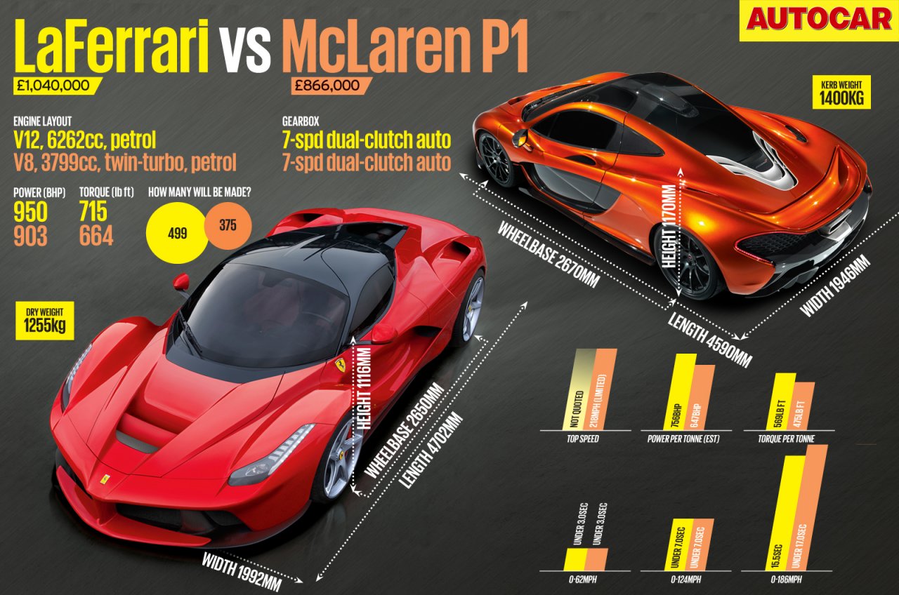 Ist aber eigentlich auch egal. Ich finde nämlich wichtig, dass diese extremen Supersportwagen auch extrem aussehen. Und das erfüllen sowohl P1 als auch der Ferrari. Höhe unter 1,20m, deutlich über 1,90 breit und zerklüftet. :-))!