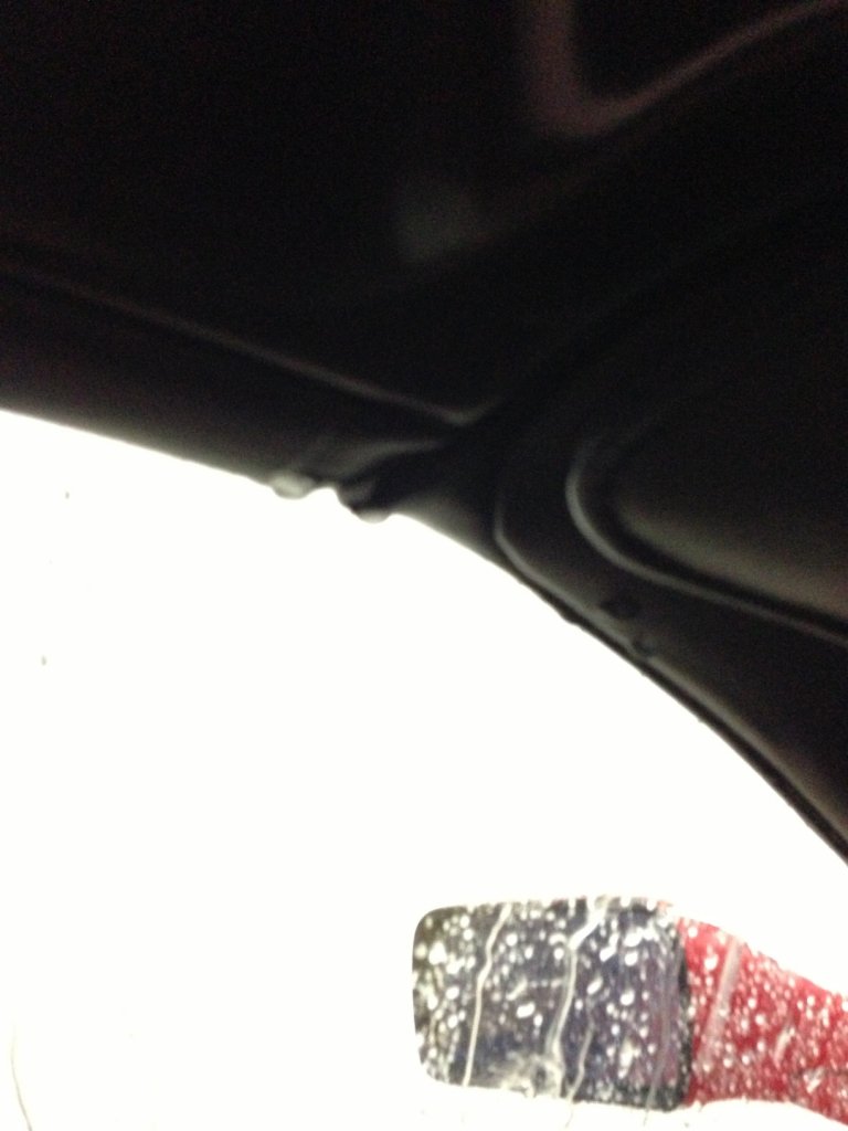Leider ist mir dann erst mal aufgefallen WIE undicht mein Targadach ist. Klar - wenn man mit dem Kärcher draufhält ist jedes Dach undicht. Jedoch reicht schon leichte Wasserbesprühung - und es tropft nur an einer Stelle und zwar genau da wo das Targadach auf der A-Säule aufliegt.