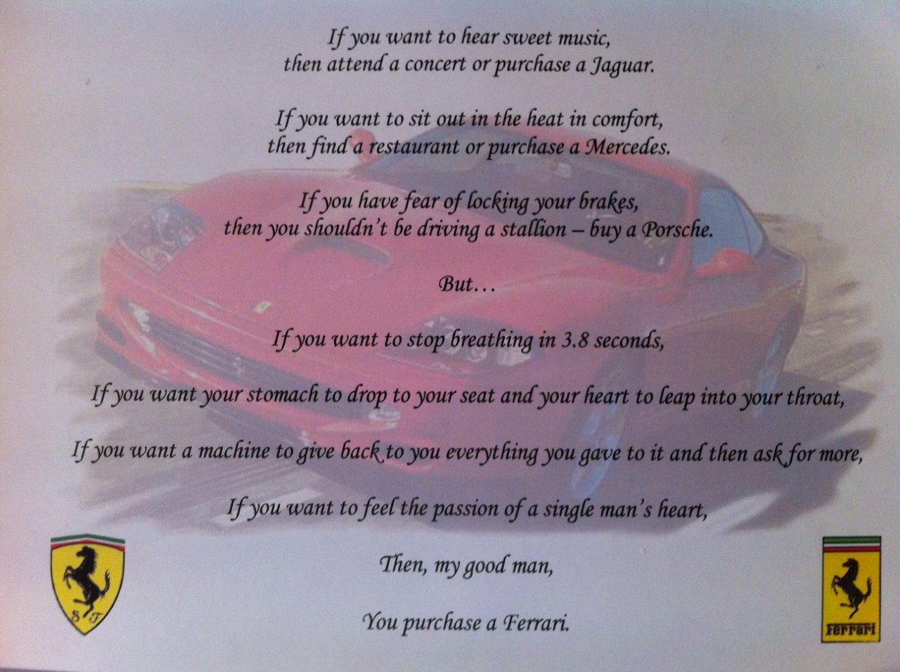 Auf das, dass der Spaß am Ferrarifahren auf Ewig anhält!