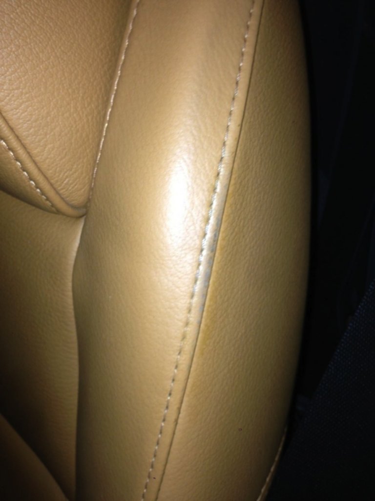 Bei meinem BMW Z4 schleift leider der Gurt am Leder. Deshalb verfärbt sich das Leder dort immer und teilweise geht jetzt auch schon die braune Farbe vom Leder ab.