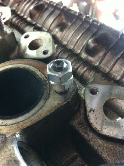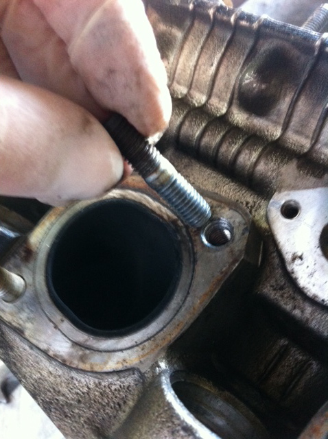 Zum Schluss wurden die Stehbolzen vom Auspuffkrümmer wieder am Zylinderkopf montiert.