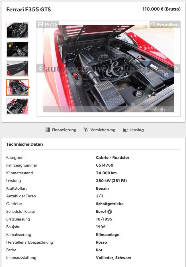 Der 355 den ich vorher hatte ist aber nach Totalschaden wieder als unfallfrei mit ca 1/2 Km wieder angeboten worden.