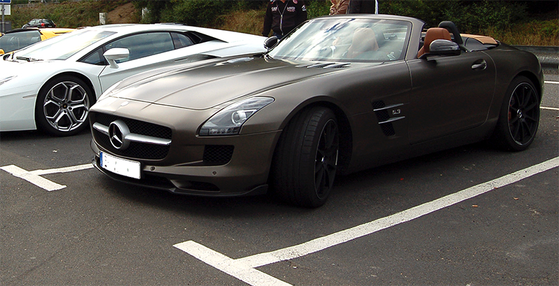letzten Monat hatte ich das Glück, in einem Mercedes SLS AMG Roadster mitzufahren! Dieser Roadster ist mir gut 2 Wochen vorher schon auf einem Mercedes-Treffen aufgefallen. Dort zog es mich irgendwie immer wieder zu dem Auto hin - absolut fasziniert von der unkonventionellen Lackierung und den "leichten" Brabus Modifikationen, die Farbe des Interiors, die grandiosen Felgen, einfach alles war absolut stimmig. Wie ich finde, der schönste SLS Roadster den ich bisher gesehen habe. Ein Traumauto! Tagelang war ich am schwärmen vom dem SLS - meine Freundin konnte es schon nicht mehr hören :wink: