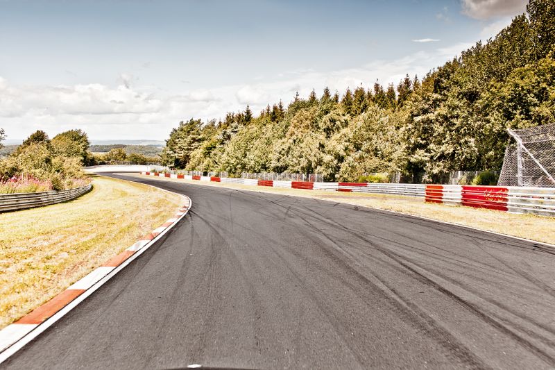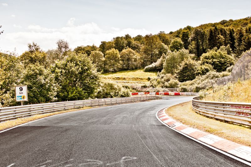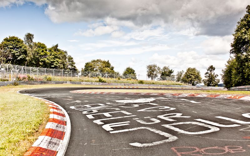 Der Fotograf Stefan Bogner hat es geschafft dabei genau den Blick des Fahrers auf die Ideallinie einzufangen und so eine ganz besondere Perspektive auf die Nordschleife geschaffen. Bei der eigenen Fahrt rund um die Nordschleife bleibt einem kaum der Blick auf die Gegebenheiten der Strecke, auf die winzigen Details und auch sicherlich nicht auf die ganzen Beschriftungen, welche ihren Teil zum Reiz der Nordschleife beitragen.
