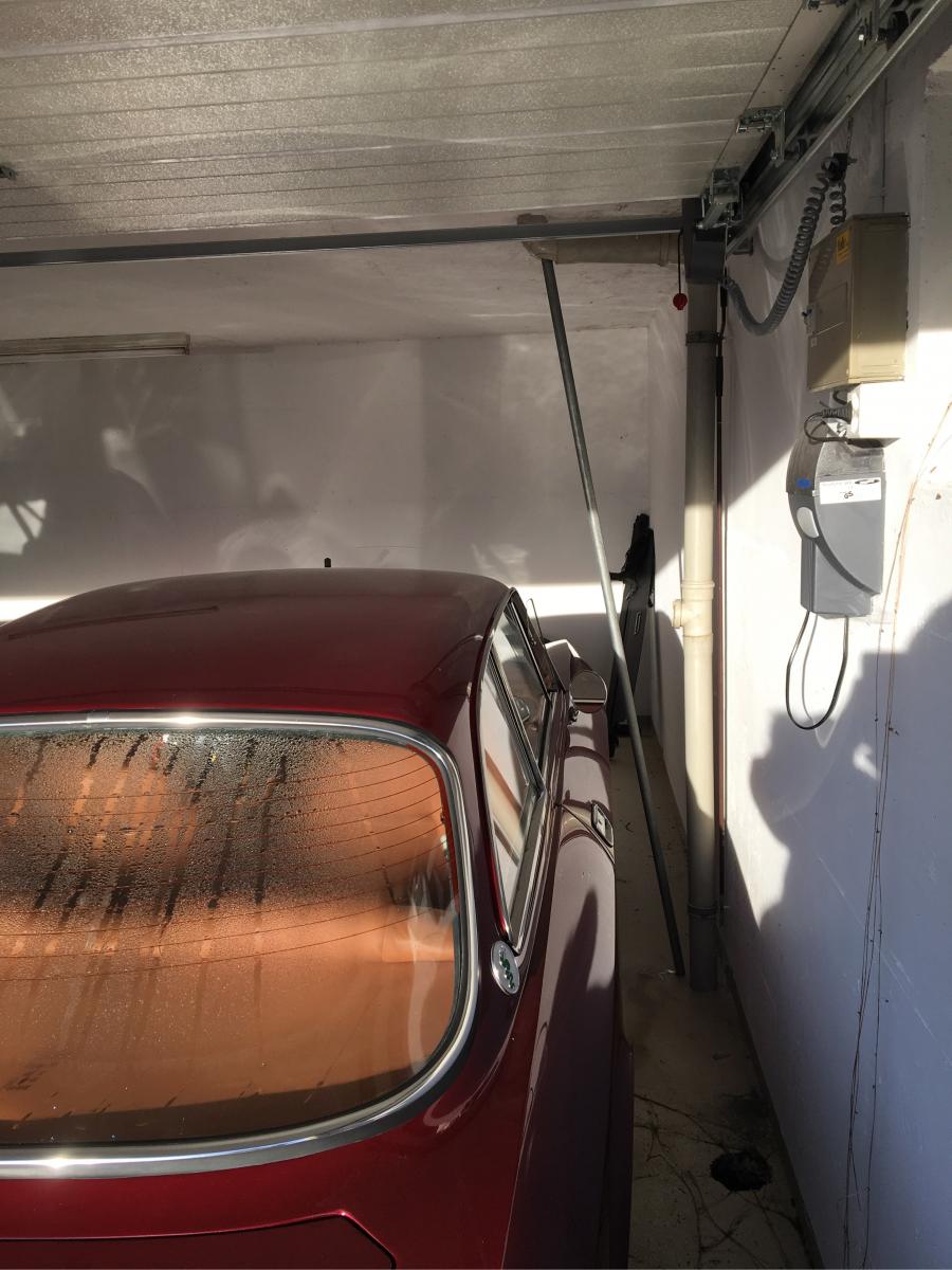 Also fangen wir mal mit Bildern an, so entdeckte ich den Alfa in der Garage. Das Eisenrohr welches nun durch das Ablaufrohr genau über dem Alfa hängt gehört da eigentlich nicht hin!