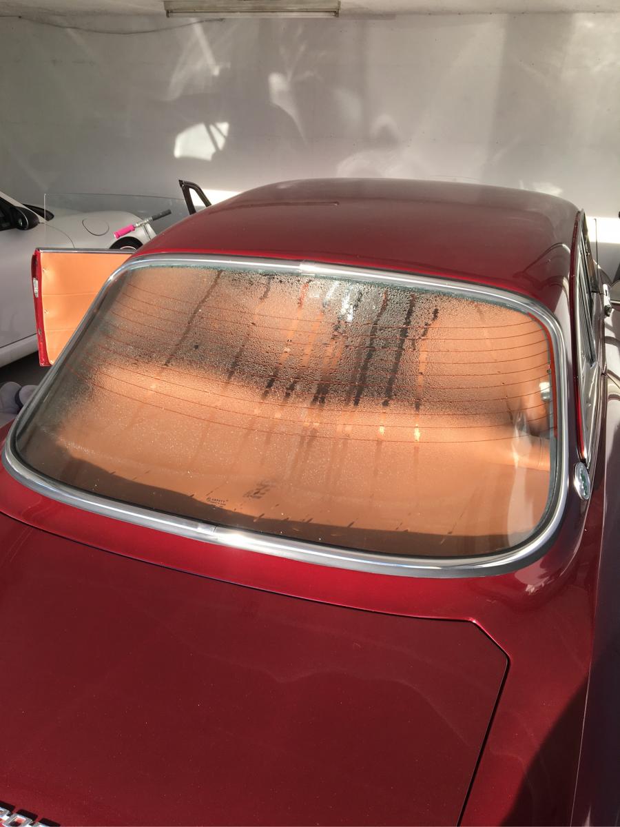 Kürzlich öffnete ich wieder mal die Garage in welcher der Alfa neben dem Porsche Cabrio meiner Frau gerade den Winterschlaf hält und wollte ihn für die kommenden tiefen Temperaturen noch ins Pyjama packen. Da fiel mir Wasser innen an der Heckscheibe auf, beim genaueren hinsehen wurde mir dann übel!:evil: