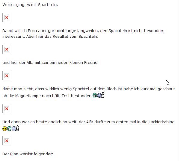 Toni, versuch es einfach mal mit einem anderen Browser. Falls Du IE verwendest, versuch mal Chrome oder Firefox. Seit dem letzten Update von IE geht so einiges nicht mehr. Du hast Probleme mit Bildern, ich hatte Problem mit Videos und Smilies - jetzt auf Chrome geht alles wieder ohne Probleme. versuch ist es wert. Kostet ein paar Minuten und wenn es das nicht war kannst immer noch woanders suchen. Viel Erfolg und Ende OT. :wink: