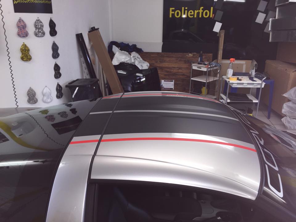 Schönes Fahrzeug ohne Frage. Die Idee ist auch gut, aber die schau mal an bei der Front. Die Folie ist nicht 100% Mittig und somit stimmt die Folie nicht mit der "Keilform" überein. Das hinten hätte ich persönlich eher "gerade" auslaufen lassen. Aber wie gesagt, die Idee finde ich cool:-))!