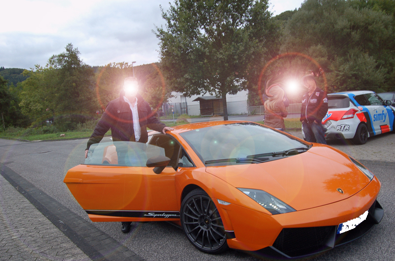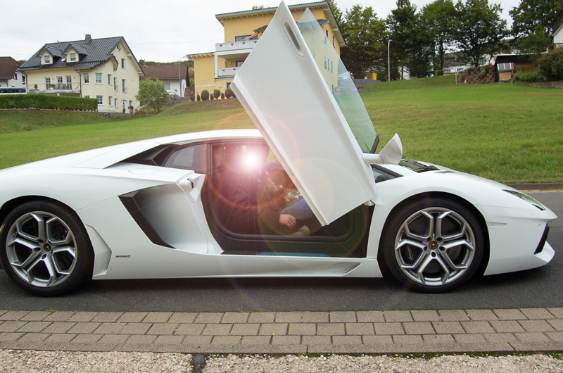 Am gleichen Tag kamen mir fast die Tränen, als mir und meiner Freundin ein Ausflug in gleich mehreren Sportwagen angeboten wurde. Lamborghini Diablo, Gallardo SL, Aventador, Mercedes SLS AMG, Nissan 350Z! Mitgefahren bin ich zunächst im SLS AMG Roadster mit Brabus Spezifikationen. Grad bei der Fahrt mit offenem Verdeck bekam man die "Dominanz" dieses Autos regelrecht zu spüren. Die Soundkulisse einfach unbeschreiblich, man konnte fast den vorausfahrenden Lamborghini nicht mehr klanglich wahrnehmen. Für mich persönlich ausserdem optisch auch einer der schönsten SLS die ich bisher gesehen habe. Die Freude grad mit diesem SLS mitzufahren war daher umso größer. Danach gings mit dem Gallardo Superleggera weiter, ebenfalls ein tolles Erlebnis da das Gefühl hier mitzufahren ein völlig anderes war, statt Dominanz eher eine Diva die mit ihrer Agilität trumpfte. Zu guter letzt dann ein weiteres Highlight, die Fahrt im Lamborghini Aventador. Tja, wie soll ich diese Fahrt beschreiben?? Weißer Aventador, Fahrer aus den vereinigten arabischen Emiraten, Dubai Kennzeichen - ich kam mir vor wie der Prinz aus Zamunda ;o) Leider hatte ich keine Gelegenheit mehr in dem Diablo mitzufahren, dem Klassiker unter den anwesenden Sportwagen. Vielleicht liest der niederländische Besitzer ja mit und es ergibt sich nochmal die Gelegenheit....ich sag nur...Viva Italia´14 ;o)