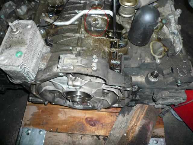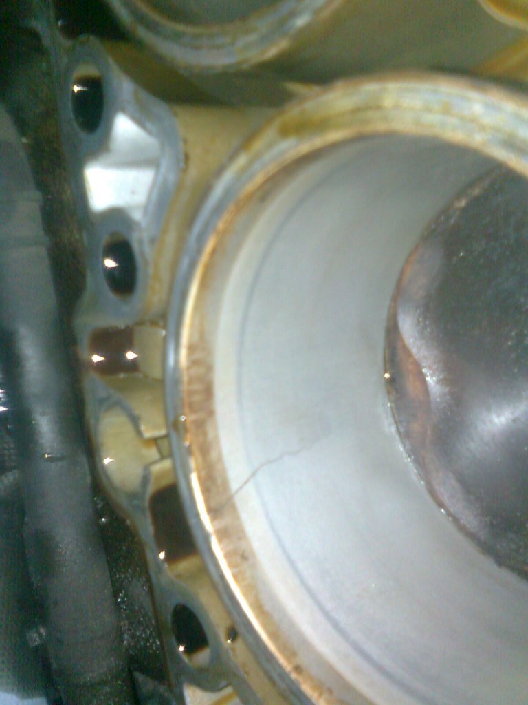und dieser von einem bekannten,pleuellager auf der welle gefressen,dann abgebrochen.pleuelteile haben wie an der markierung zu sehn ist die gehäusedecke durchschlagen:D