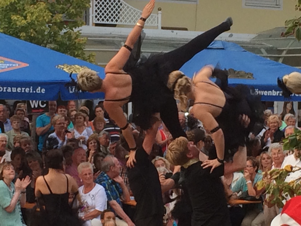 Das alles ohne Hilsmittel, wie Trampolin, und sogar Saltos der Damen in luftiger Höhe, war schon beeindruckend.