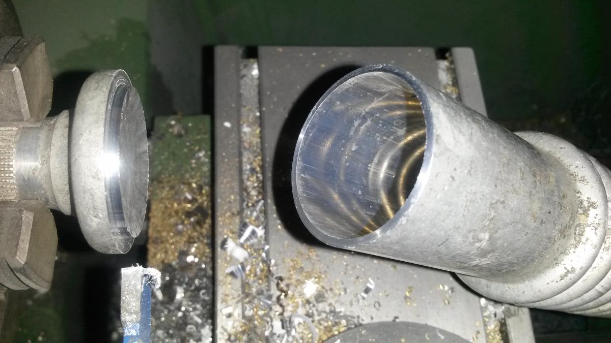 Heute habe ich dann aus Alu einen Zapfen gedreht, der saugend in das Rohr paßt.
