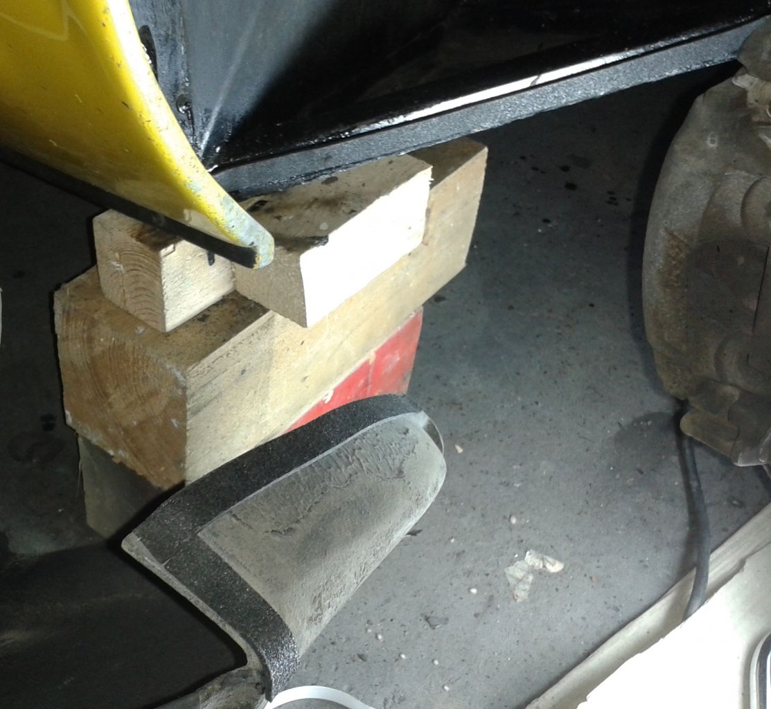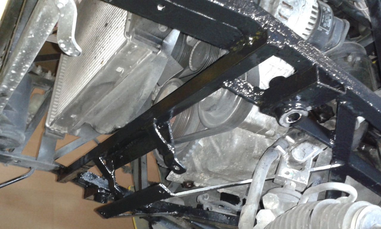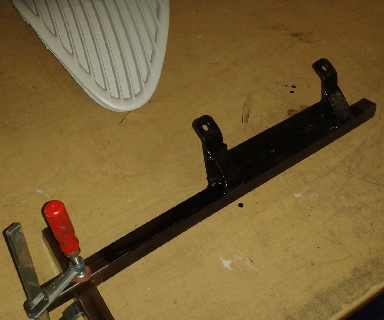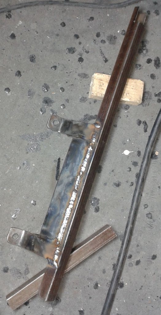 Mit Hilfe dieser Teile und Schraubzwingen + Klemmen konnte ich das Querrohr im Wiesel befestigen und den Lenkungshalter so lange beschleifen, bis er paßte.