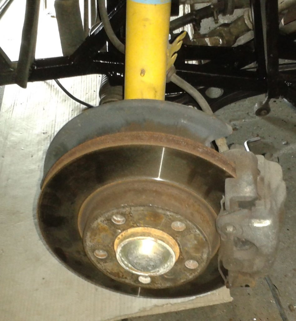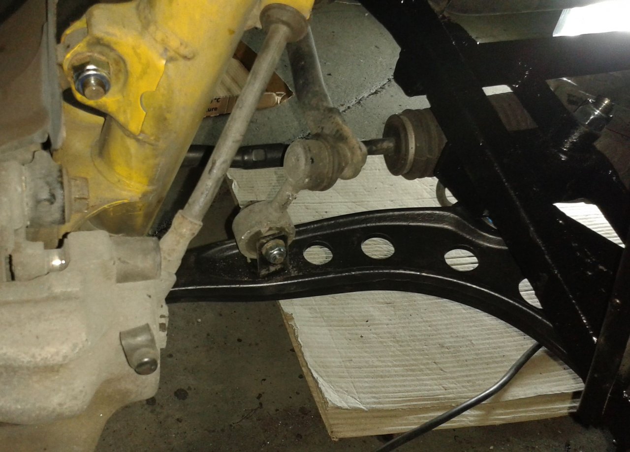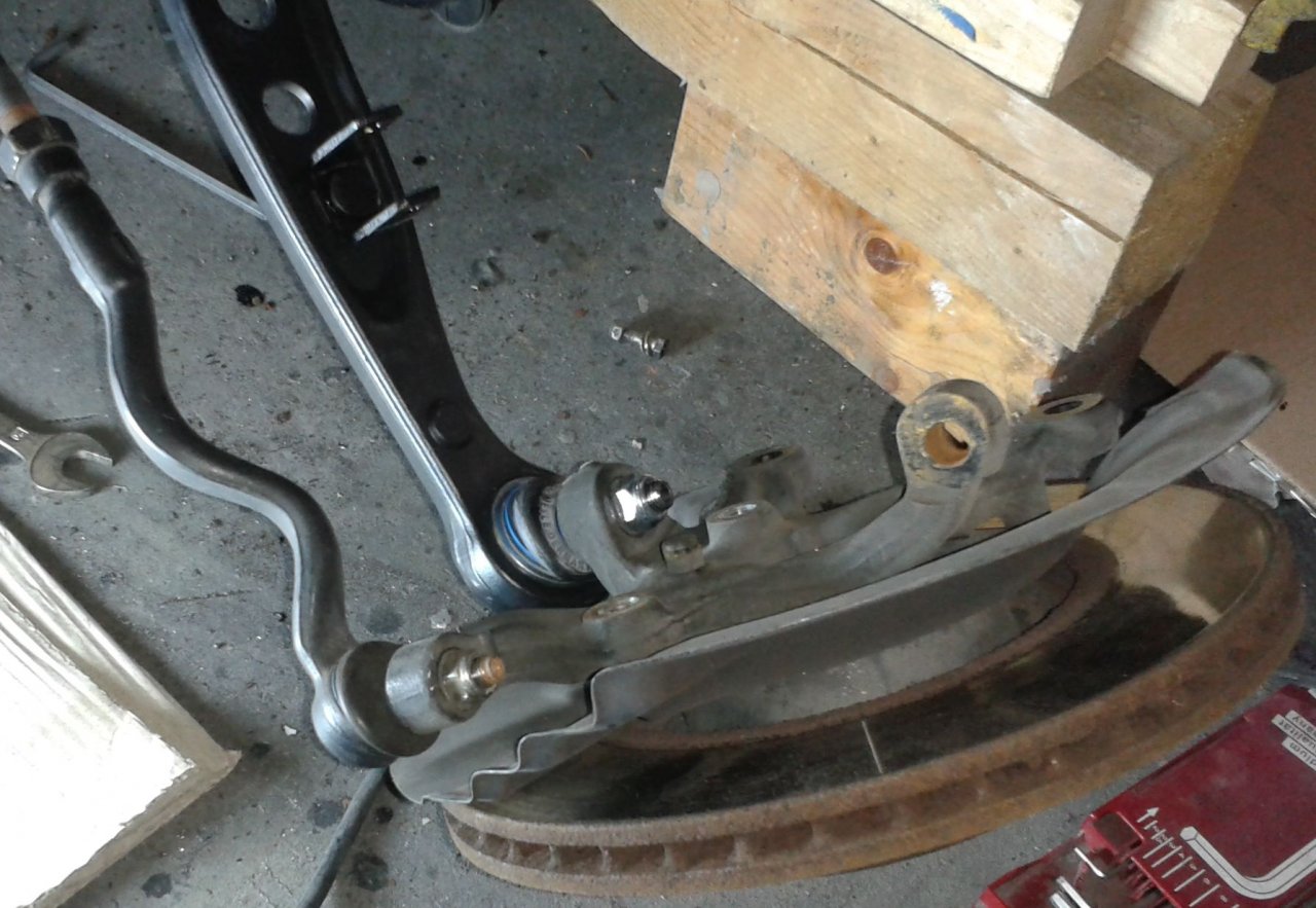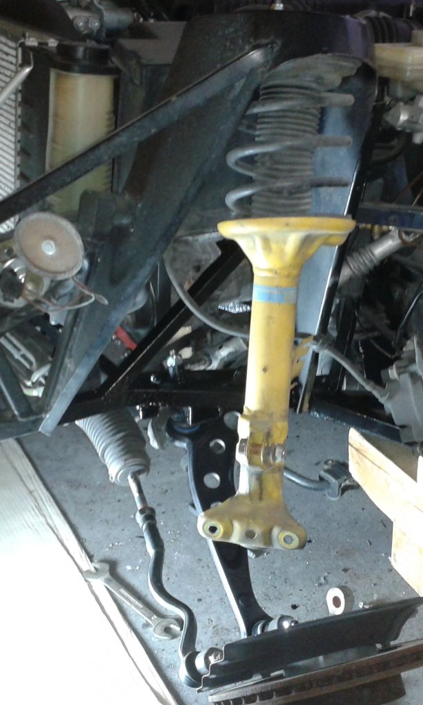 Anschließend kamen die Radträger wieder rein und die Federbeine, dann die Bremszangen. Zuletzt der Stabi mit den Koppelstangen.