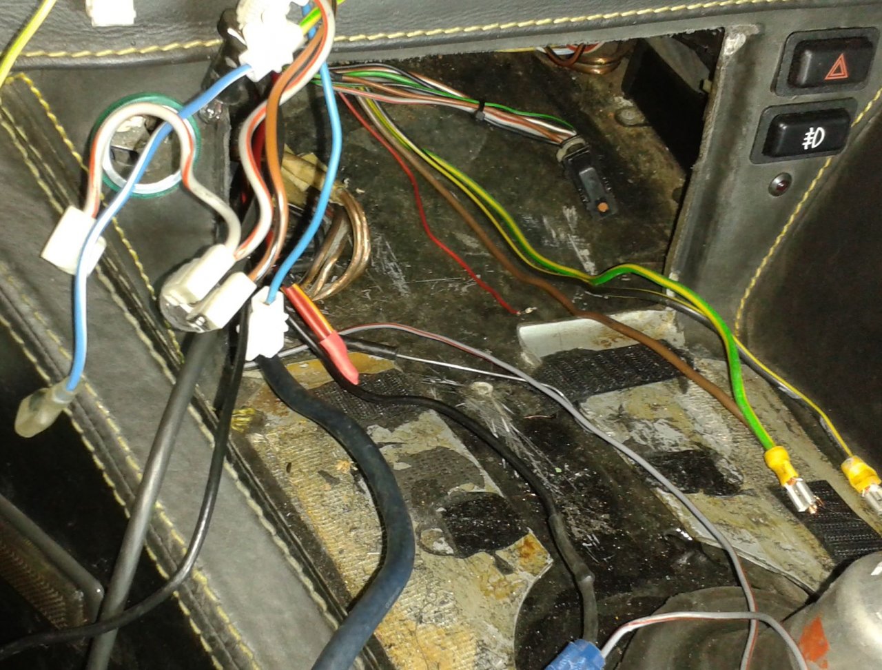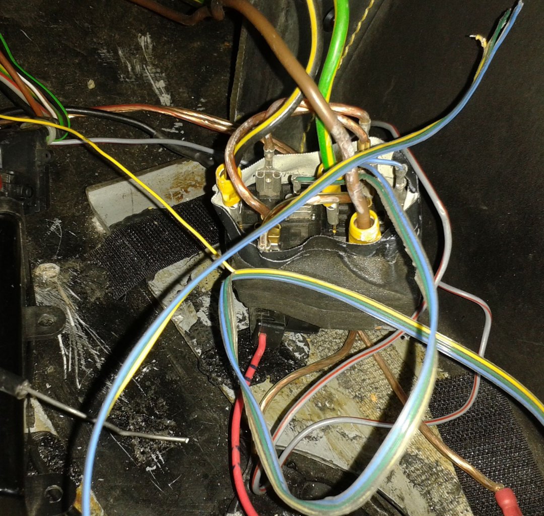Ich kann eines nicht leiden: Lüsterklemmen in einem KfZ und Kabel, deren Farben sich von Klemme zu Klemme ändern! Erschreckendes Beispiel von Blau auf Klar auf Schwarz und dann der letzte Stecker Rot angemalt.....OHHHH man! Aber mit Hilfe von O.H., seines Zeichens #006-Besitzer Nummer 4, habe ich einige Kabel und Relais identifiziert, die raus können, ohne große Durchmeßaktionen. Ich muß morgen feststellen welche Kabel Stufe 1 und 2 der Lüftung sind!