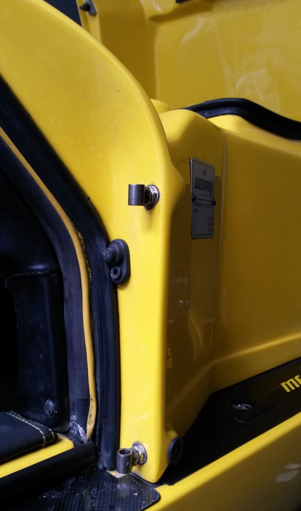 Dann habe ich die nächsten Steinschlagschützer angebracht und die Beifahrertür anders eingestellt. Sie knarzte etwas, da sie hinten am Leder schliff. Dank einfachster Konstruktion, kann man die Tür einfach aushängen, die Scharniere verstellen und fetten.