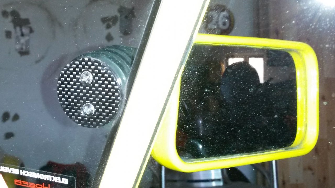 Soderle, dier Befestigungsscheiben der Spiegel sind fertig und montiert! Hatte sicherheitshalber schon mal ein paar mehr gemacht. Sind auf CAD gezeichnet, Fräsprogramm generiert, ausgefräst aus 3mm Carbonplattenmaterial, Senkungen für die Schrauben eingeschliffen, alles angeschliffen und klarlackiert. Das letzte Bild ist der alte Zustand. Wer sowas braucht: PN oder Mail!