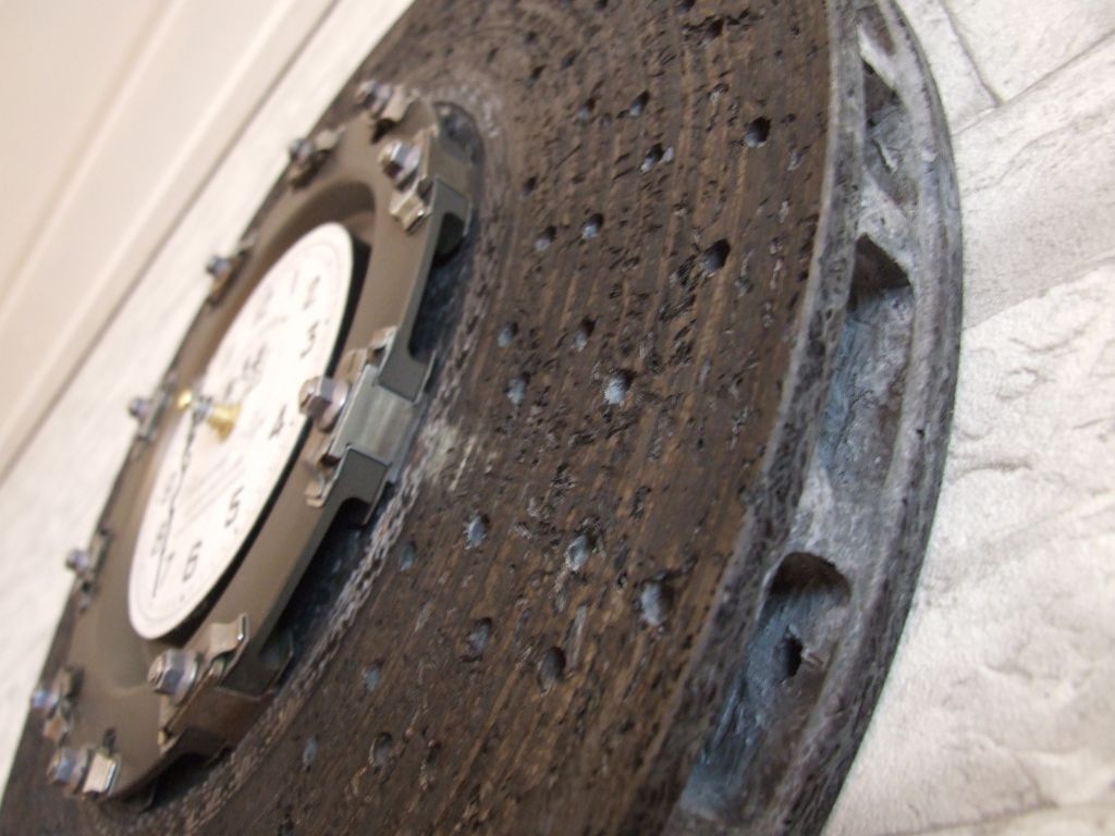 hier ein paar Bilder von einer Karbonbremsscheibe von einem F430 die ich als Wanduhr umfunktioniert habe. Scheibe aus der Bucht (70€), Uhrwerk (13 cm Durchmesser, 10€) ebenfalls. Dann noch 5 Minuten Arbeit, einen Nagel in die Wand und fertig ...