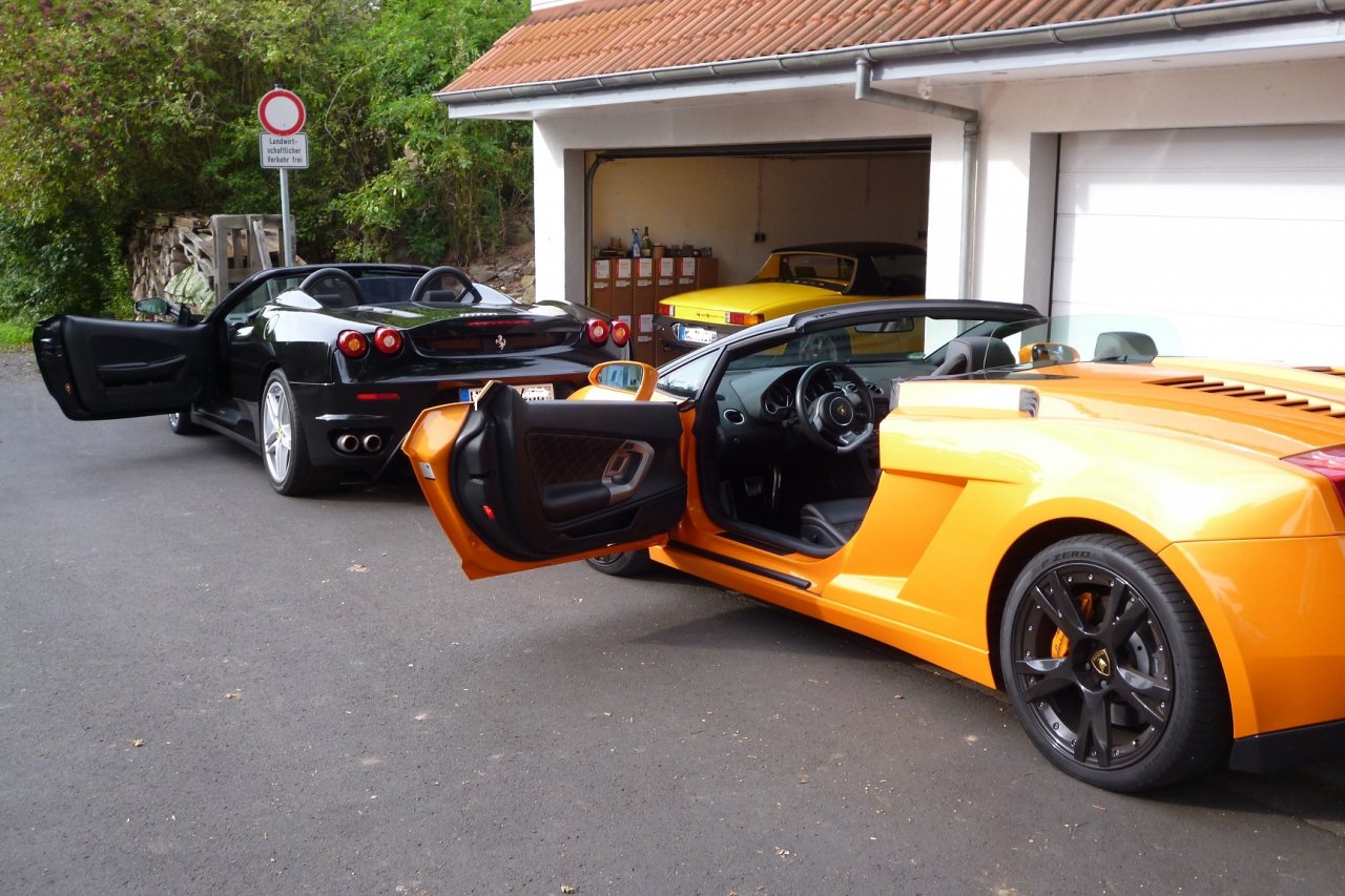 Aus Erfahrung kann ich Dir sagen, dass der Kofferraum des F430 viel größer ist als der des Gallardo. Durch den Allradantrieb des Gallardo hast Du zwar die Tiefe im Kofferraum, jedoch nicht die Breite wie im F430. Im 430 kann man 2 Stoffkoffer + 2-3 Taschen verstauen. Im Lambo geht nicht mal ein Koffer rein, nach 2 Stofftaschen ist schon Schluss.