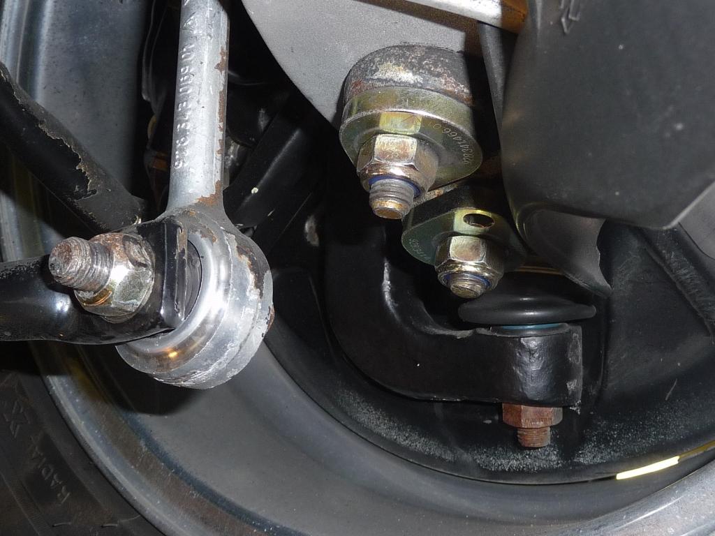 Oben Motorverkleidung, darunter Radhausansicht. Zuletzt Details der Hinterradaufhängung. Alles wird spurenlos sauber, allerdings werden lose Schichten auch von Lack abgelöst. "Entlackt" im eigentlichen Sinne wird nichts. Bremsleitungen/Krafsttoffleitungen dürfen bestrahlt werden, wenn sie nicht heiß sind. Das Bestrahlen kühlt die Bauteile ab und Leitungen verspröden sonst möglicherweise.