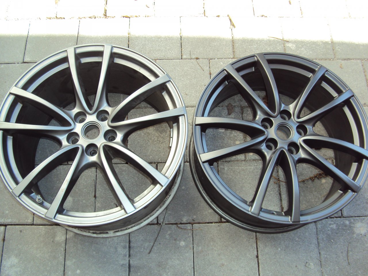 ... Kai bissle recht hat er schon , die Felgen werden ab Werk Pulverbeschichtet wodurch der Lack minimal anders wirkt wie beim lackieren , ich hab 2 lackieren lassen und diese auf eine Fahrzeugseite montiert, dann war es stimmig .